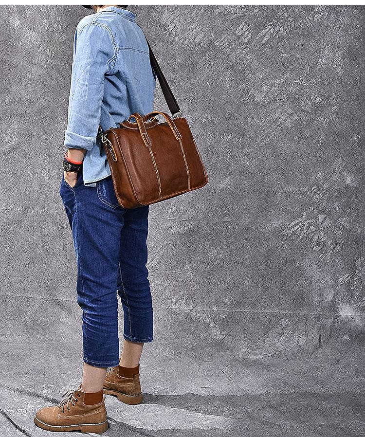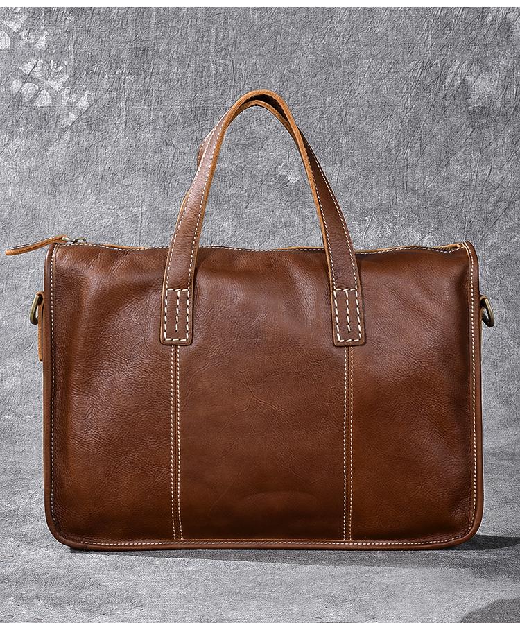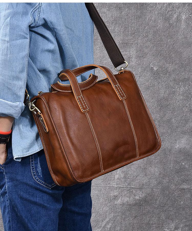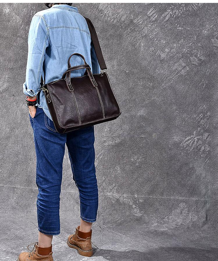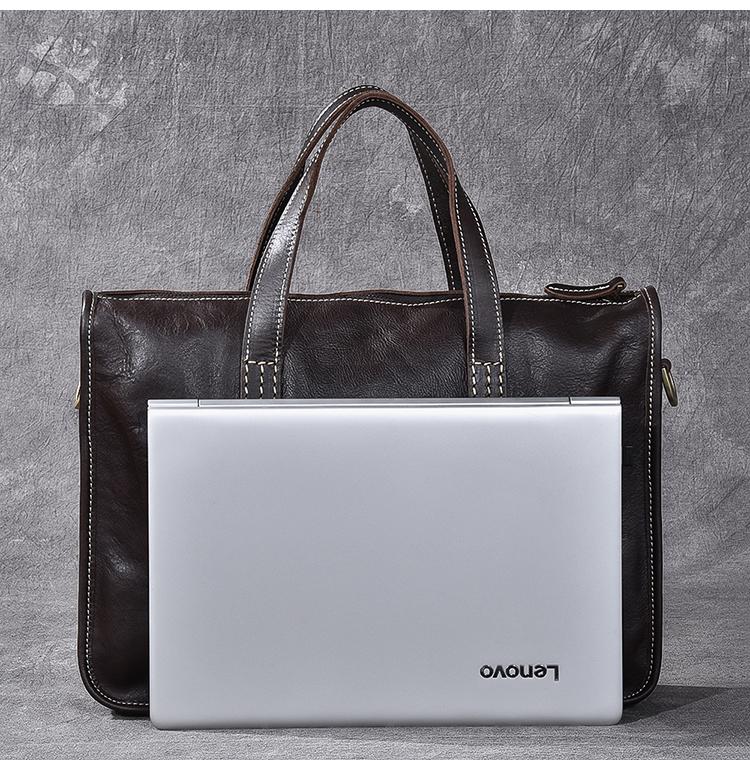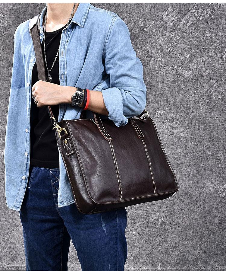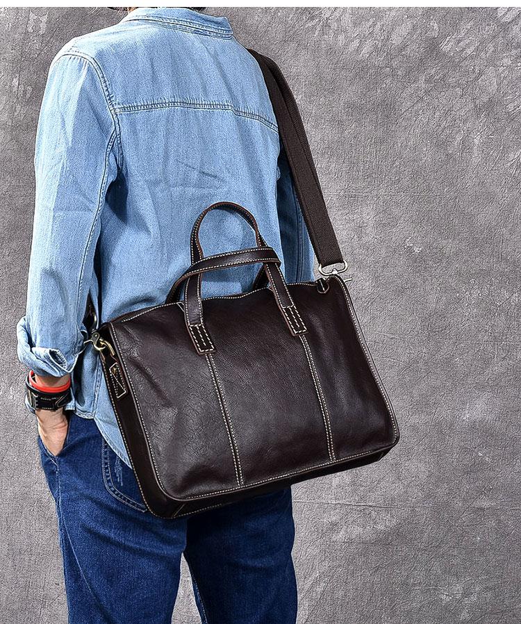 Style: Coffee Leather Mens 13" Black Laptop Briefcase Business Brown Large Handbag For Men
