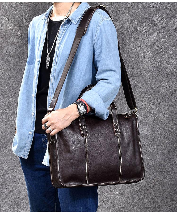 Design: Coffee Leather Mens 13" Black Laptop Briefcase Business Brown Large Handbag For Men