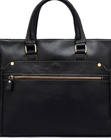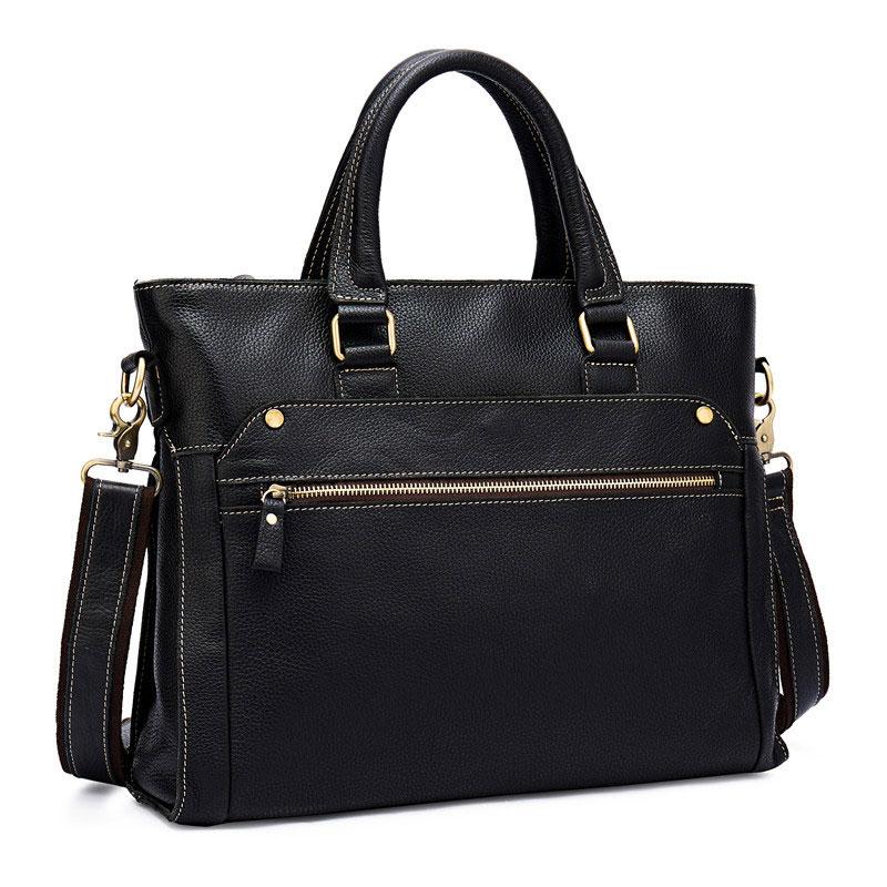 Design: Cool Black Leather Mens Briefcase 13inch Work Bag Business Bag For Men