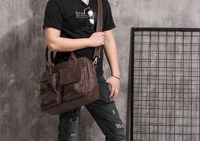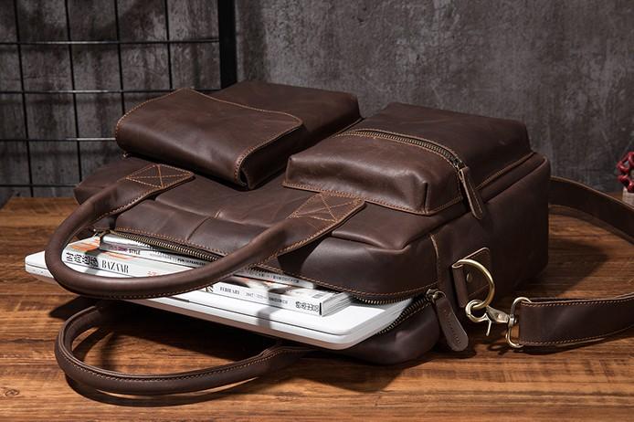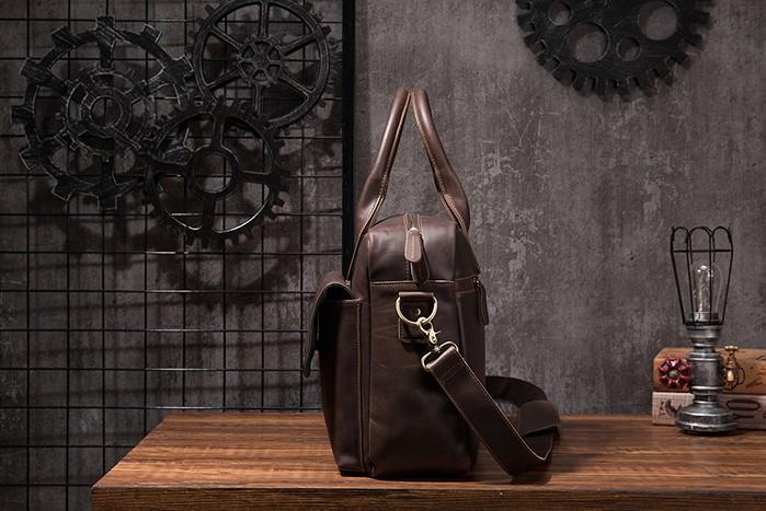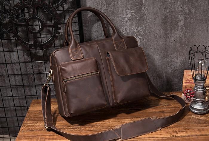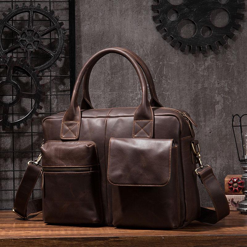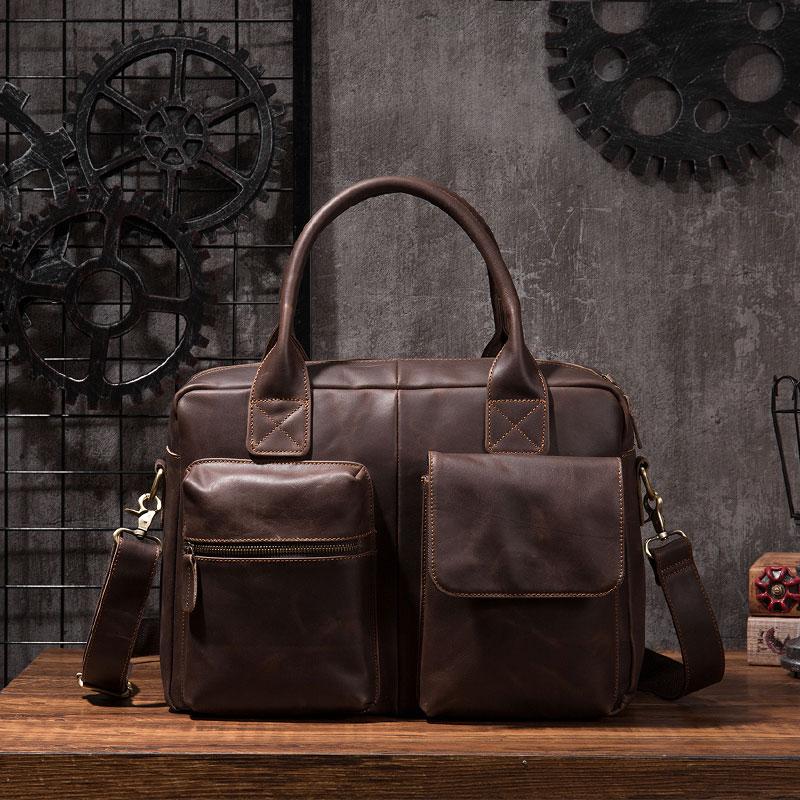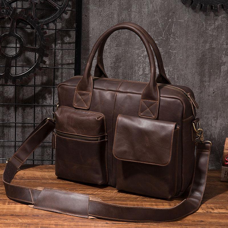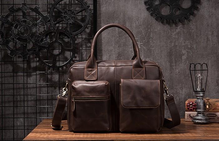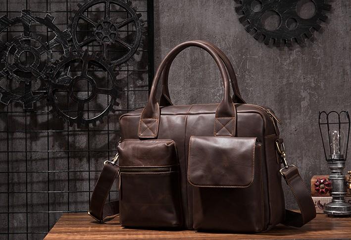 Design: Cool Coffee Leather Mens Briefcase Work Handbag Laptop Bag Business Bag for Men