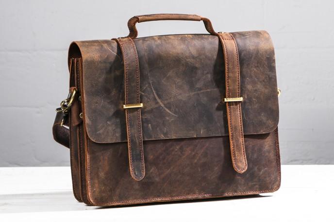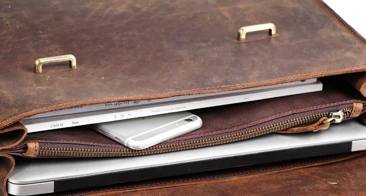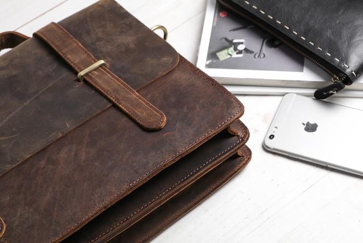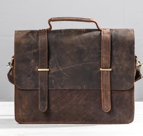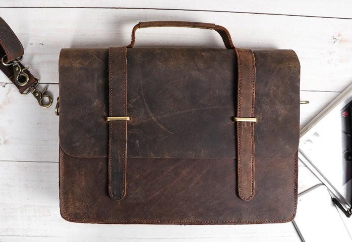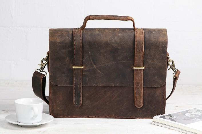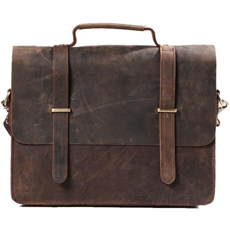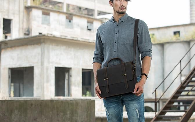 Design: Cool Coffee Leather Mens Briefcase Work Shoulder Bag Laptop Bag Business Bag for Men