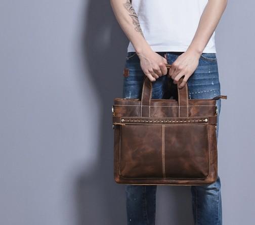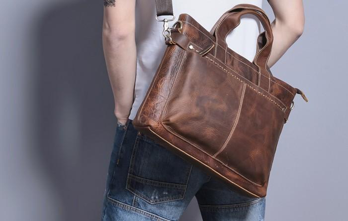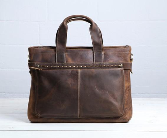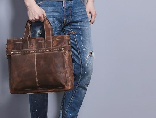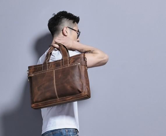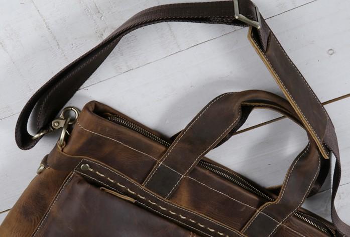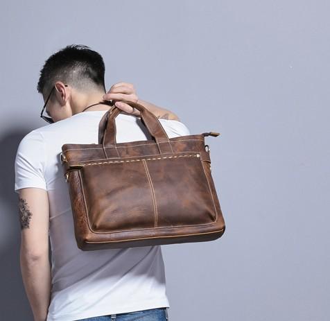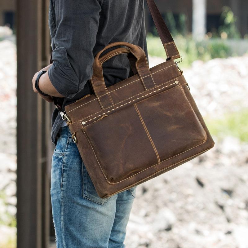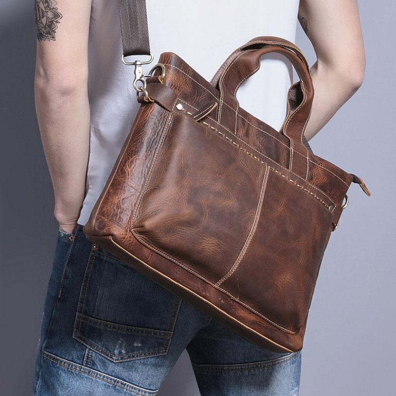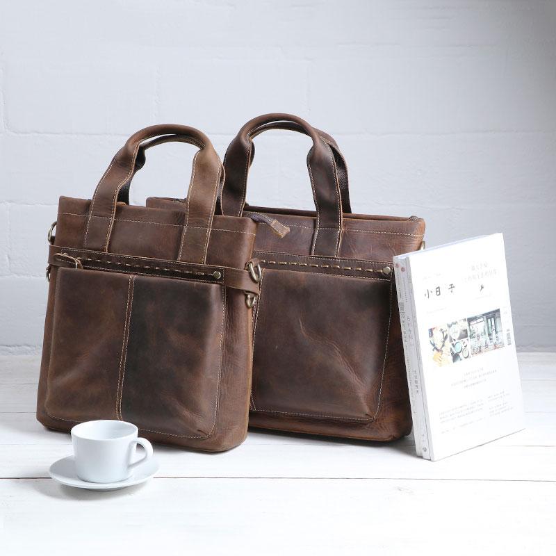 Design: Coffee Leather Mens Briefcase Work Bag Laptop Bag Business Bag for Men
