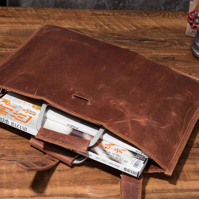 Cool Leather Mens Briefcase 13inch Laptop Bag Work Handbag Business Bags for Men