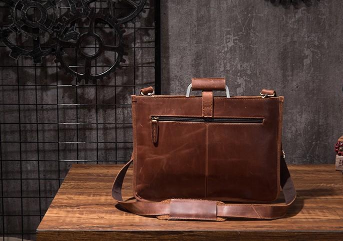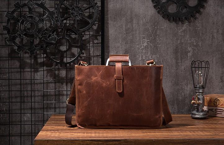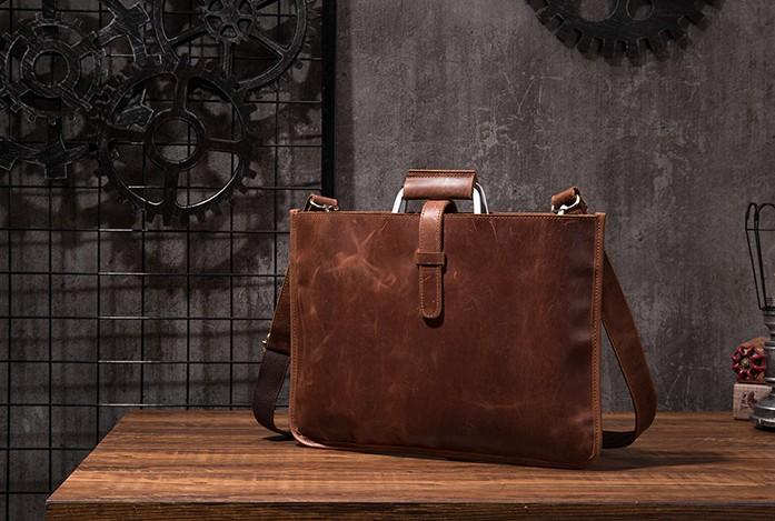 Design: Cool Coffee Leather Mens Briefcase 14inch Laptop Bag Work Handbag Business Bag for Men