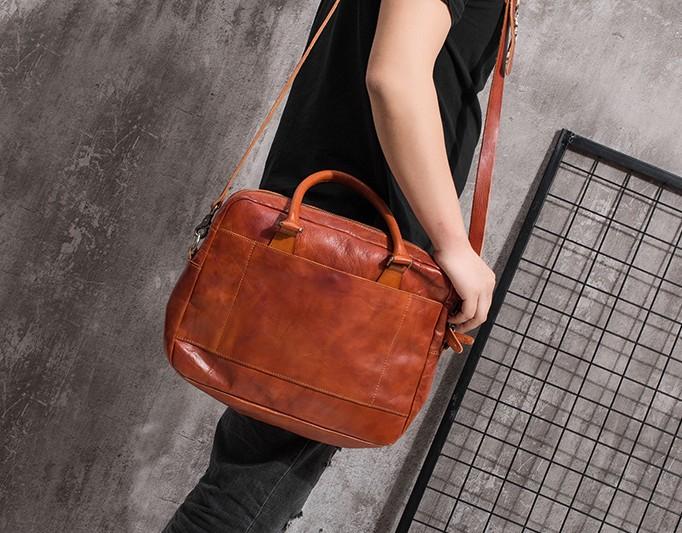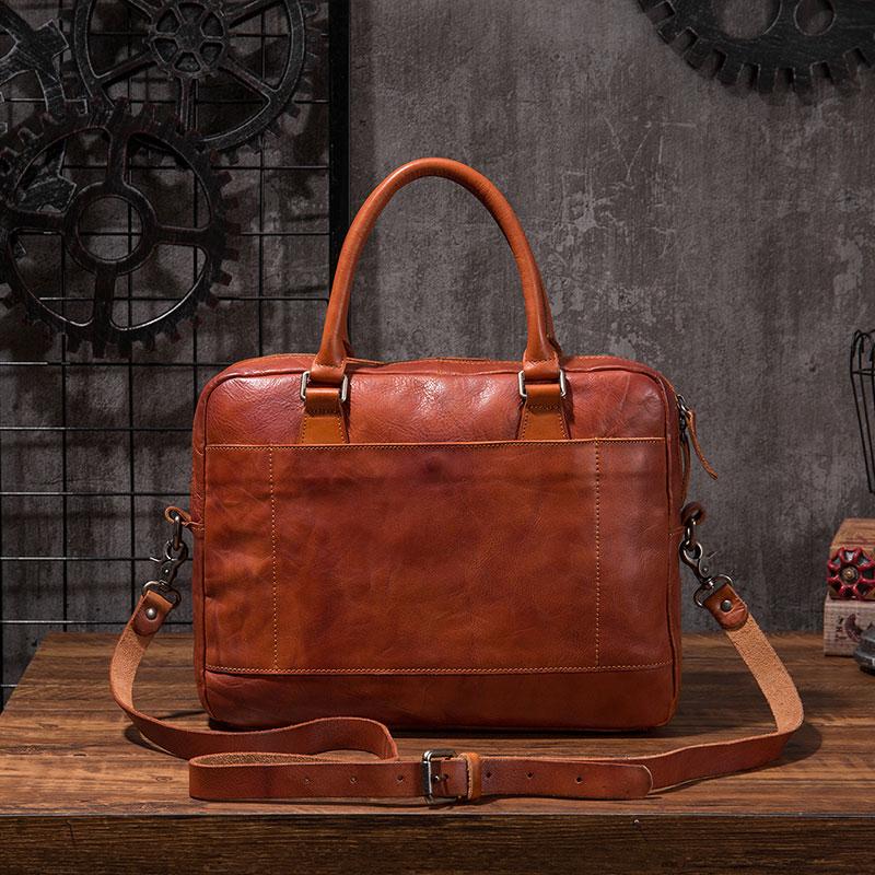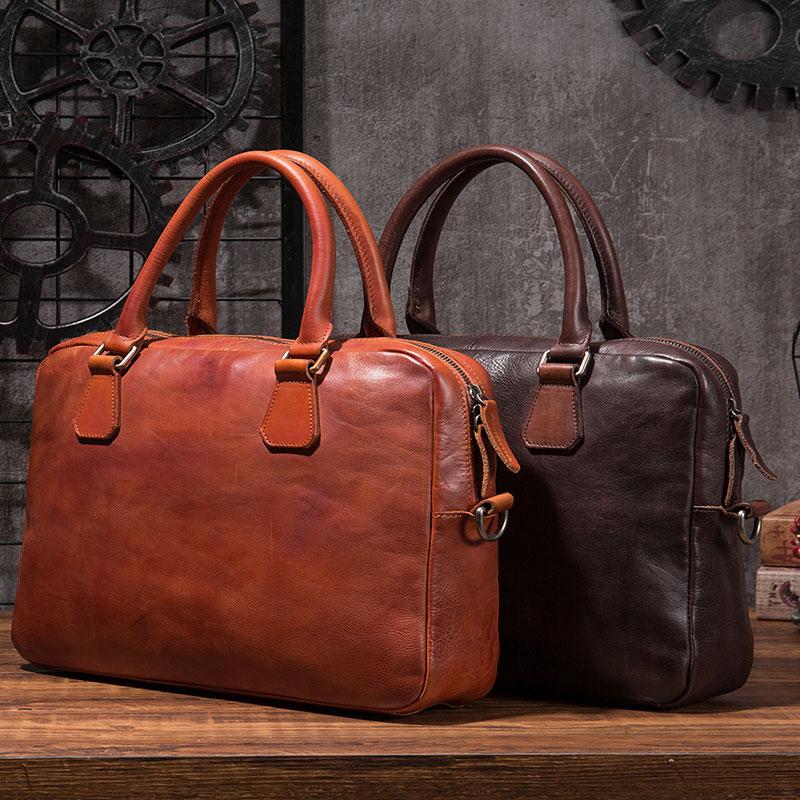 Style: Cool Leather Mens Briefcase 14inch Laptop Bags Work Handbag Business Bag for Men