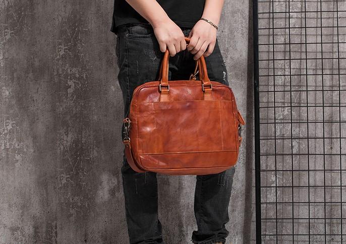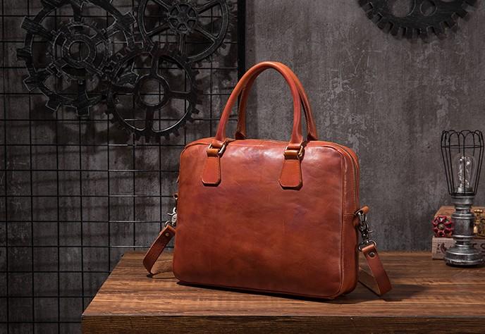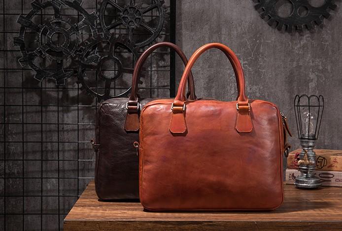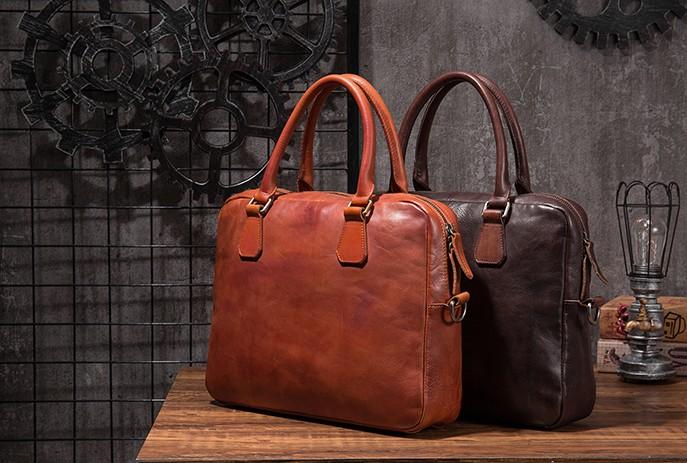Design: Cool Leather Mens Briefcase 14inch Laptop Bags Work Handbag Business Bag for Men