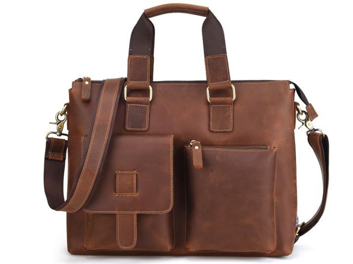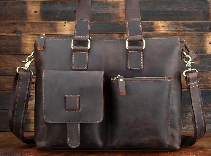 Design: Cool Leather Briefcase 13inch Handbag Work Bag Business Bag Shoulder Bag For Men