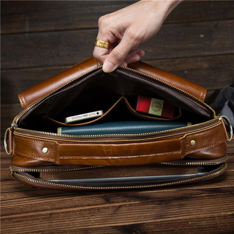 Design: Cool Retro Leather Briefcase Handbag Work Bag Business Bag Shoulder Bags For Men