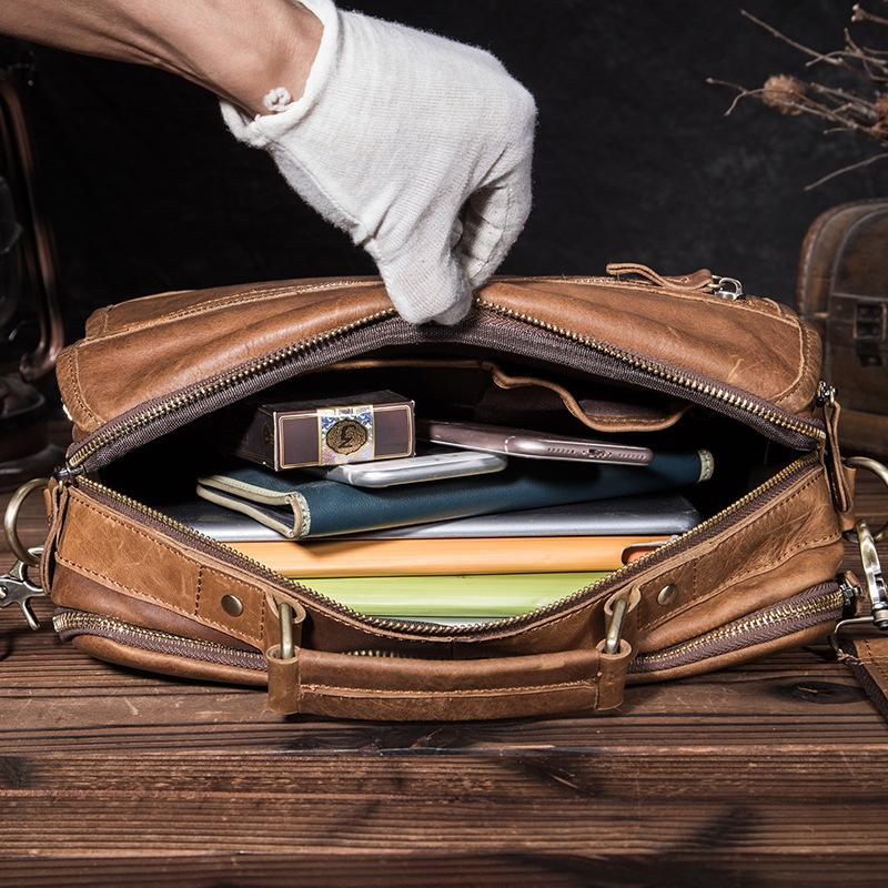 Design: Fashion Dark Brown Men's Brown Professional Briefcase 10‘’ Laptop Handbag Business Bag For MenOverview: