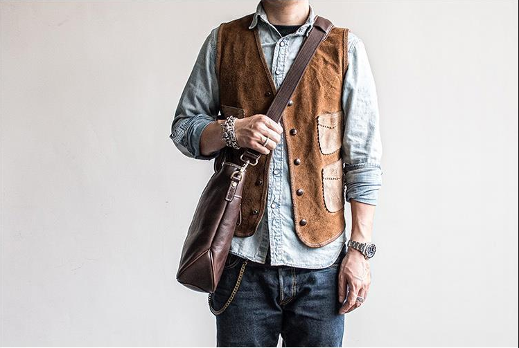 Design: Genuine Leather Mens Cool Small Messenger Bag iPad Bag Chest Bag Bike Bag Cycling Bag for men