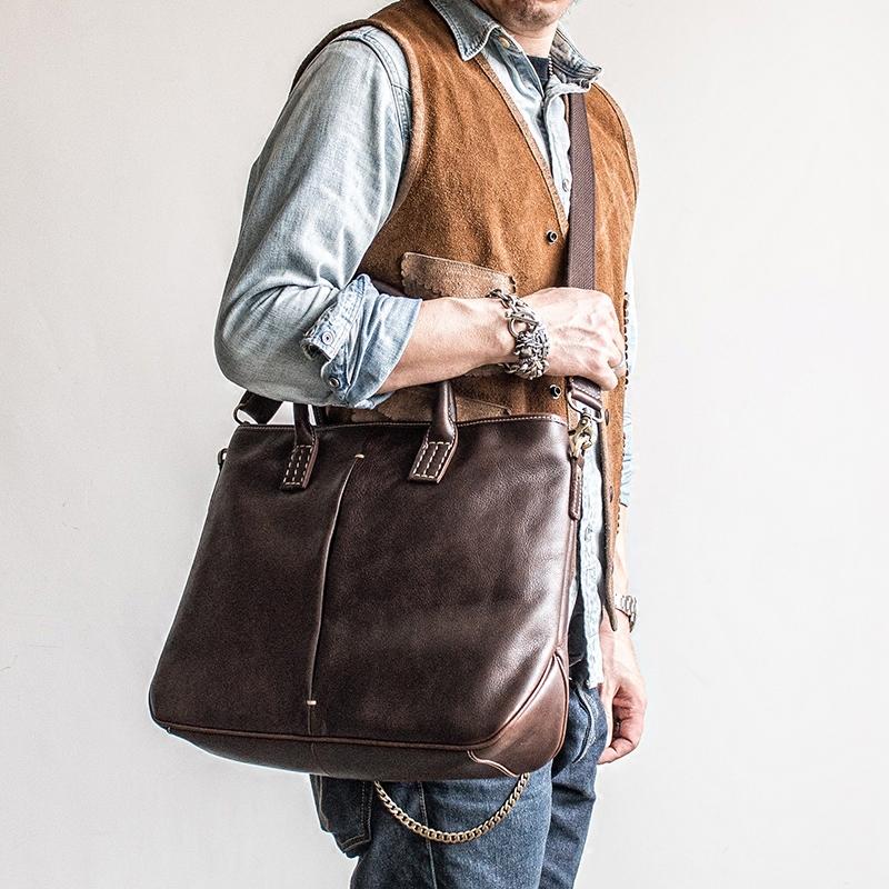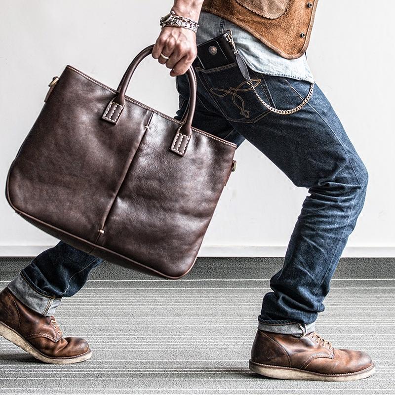 Genuine Leather Mens Briefcase Messenger Bag Laptop Bag Shoulder Bag for men