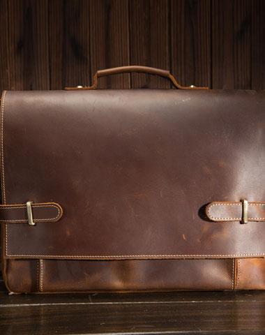 Style: Cool Leather Mens Briefcases Business Briefcase Vintage Shoulder Bag HandBag for men
