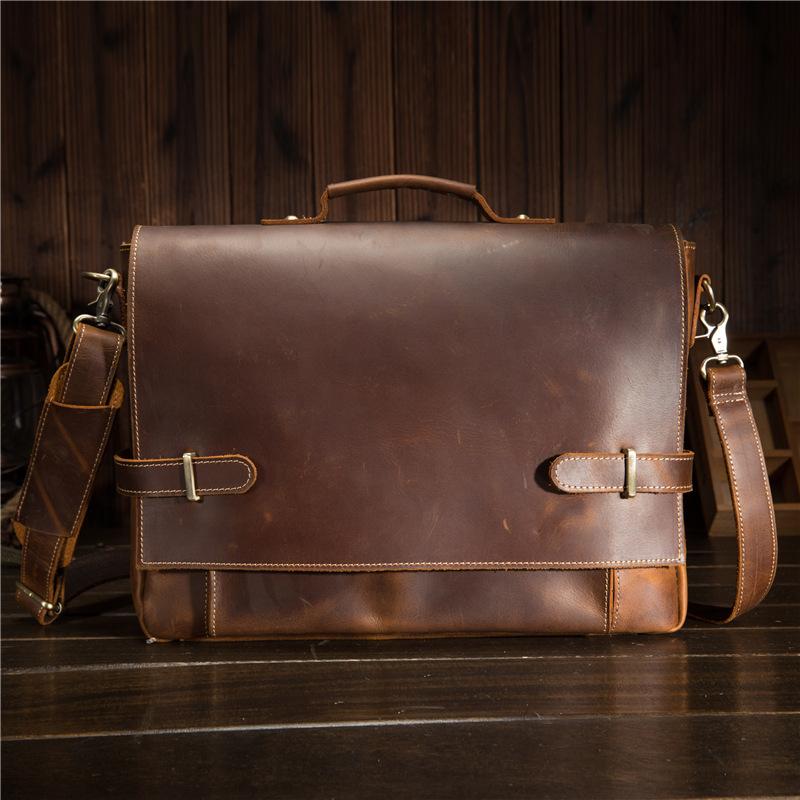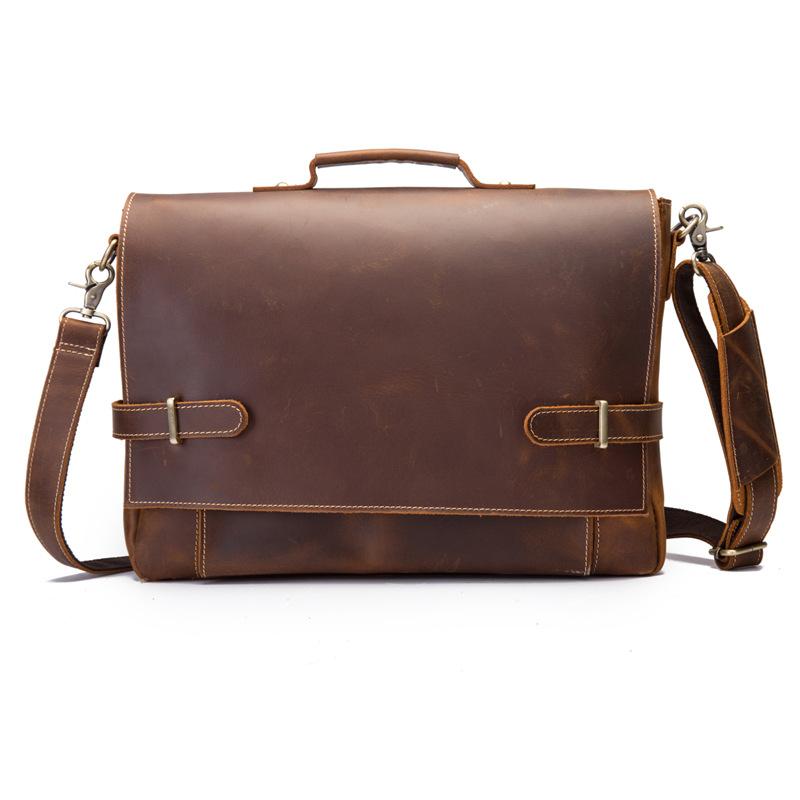 Design: Cool Leather Mens Briefcases Business Briefcase Vintage Shoulder Bag HandBag for men