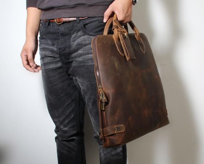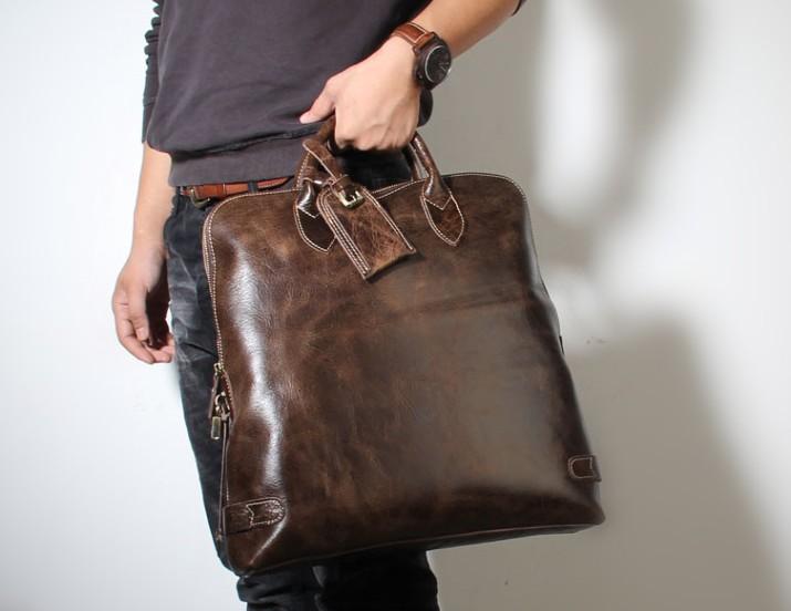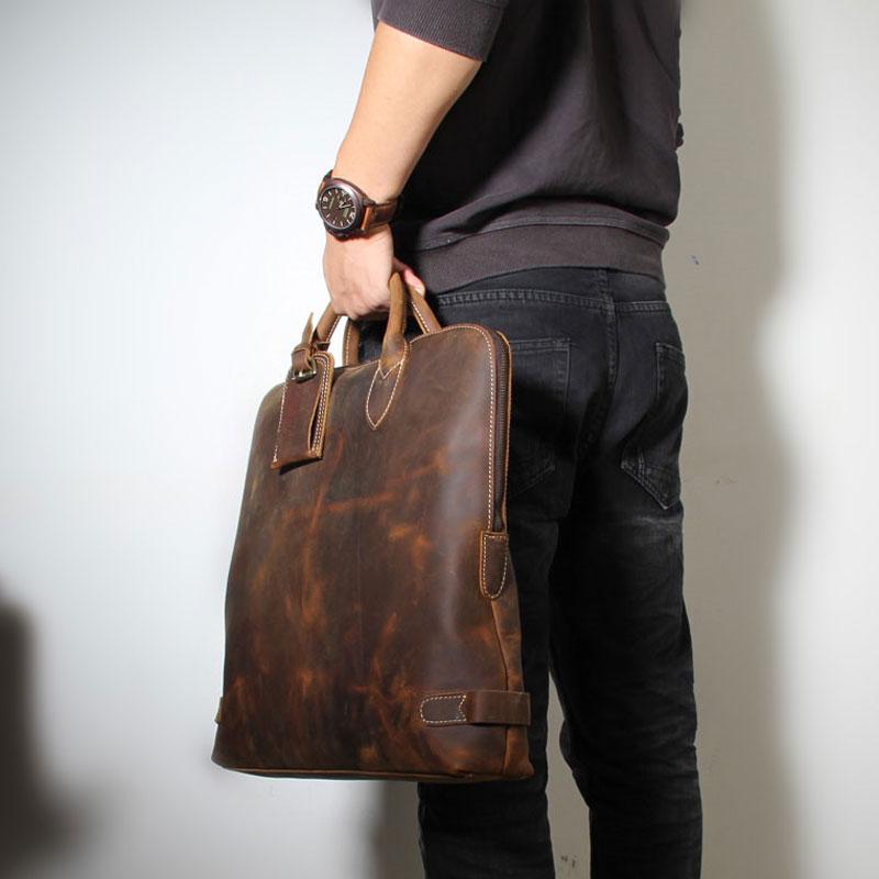Handmade Leather Mens Cool Business Bag Briefcase Work Bag Laptop Bag for men