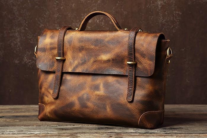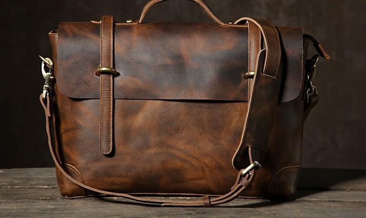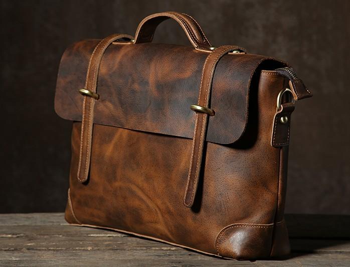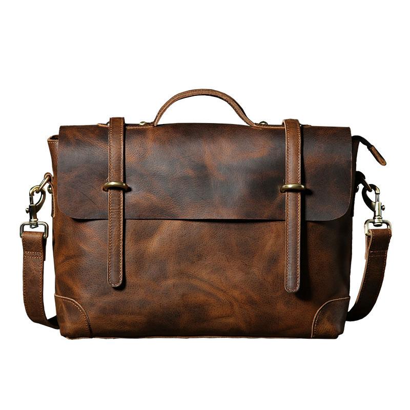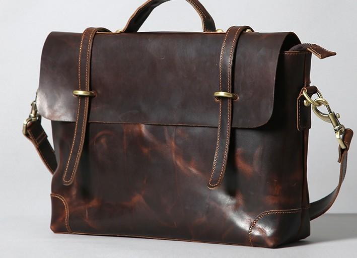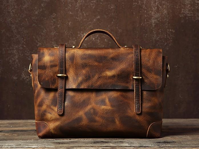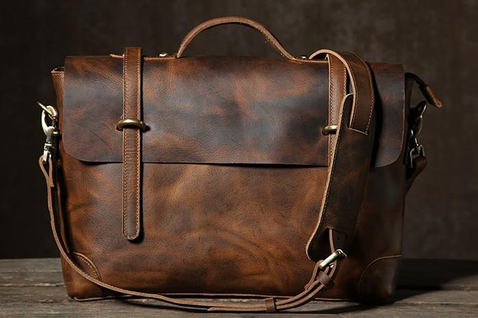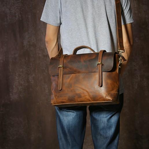 Style: Handmade Leather Mens Cool Messenger Bag Briefcase Work Bag Business Bag Laptop Bag for men
