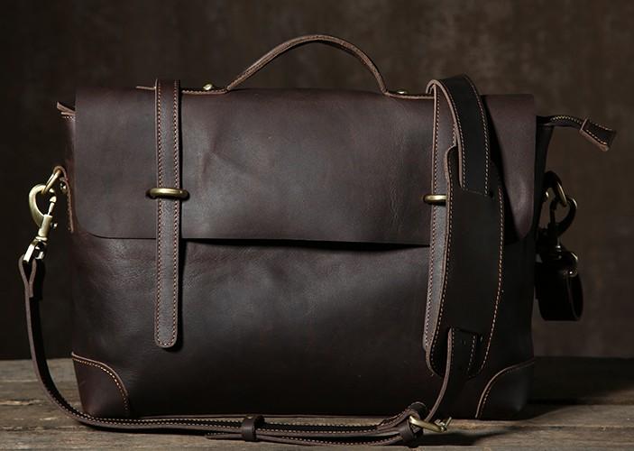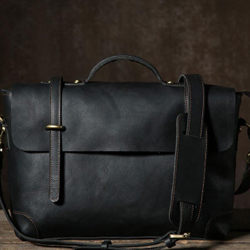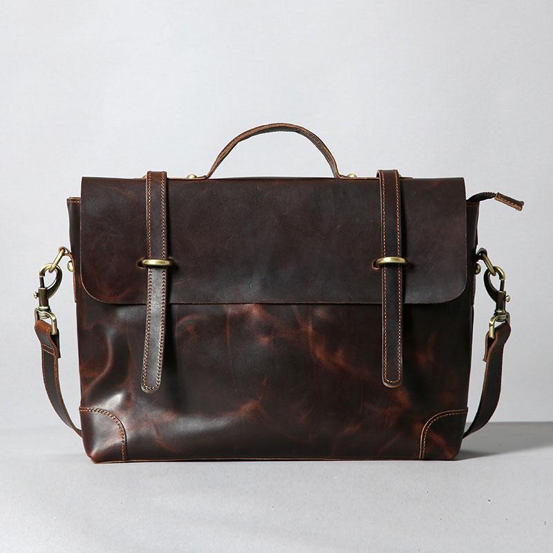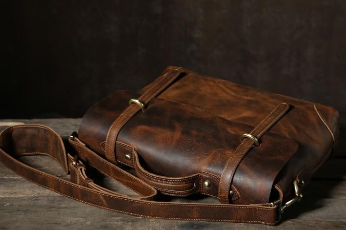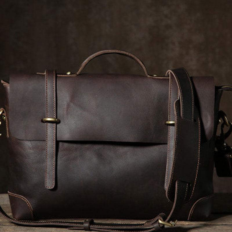 Design: Handmade Leather Mens Cool Messenger Bag Briefcase Work Bag Business Bag Laptop Bag for men