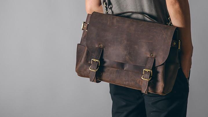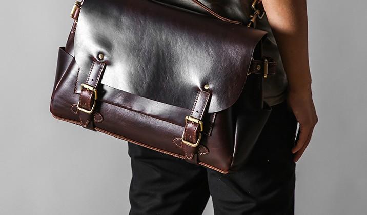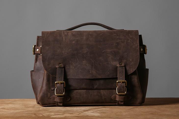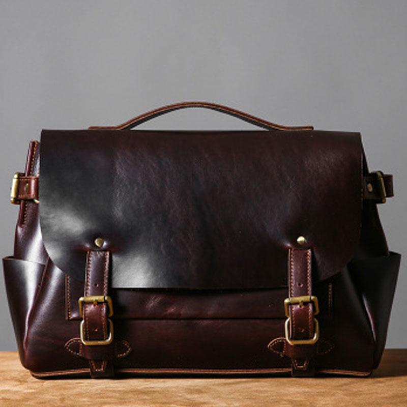 Design: Handmade Leather Mens Cool Messenger Bag Briefcase Work Bag Business Bag Laptop Bag for men