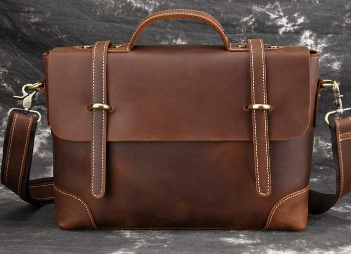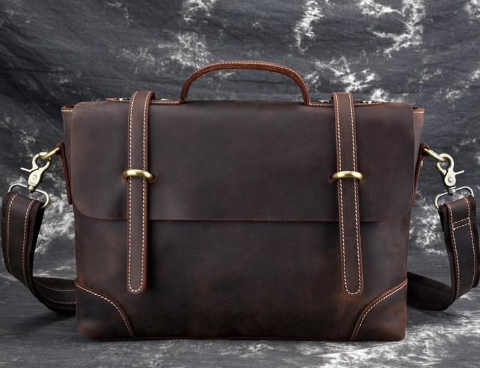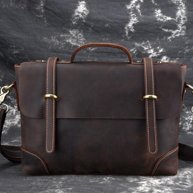 Style: Leather Mens 13inch Laptop Bag Briefcase Work Handbag Business Bag for Men