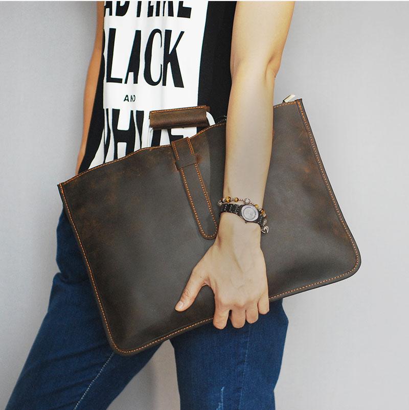 Leather Mens Dark Brown Briefcase 13'' Laptop Bag Red Brown Side Bag Handbag For Men