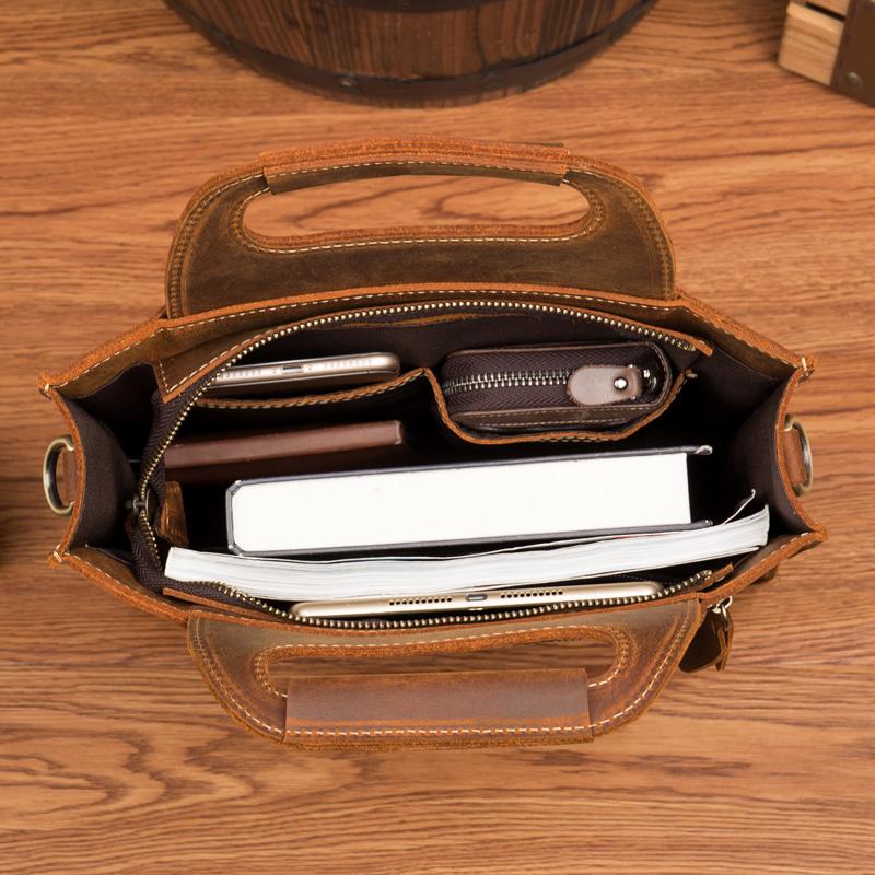 Design: Light Brown Leather Mens 12 inches Briefcase Laptop Bag Business Bags Work Bags for Men