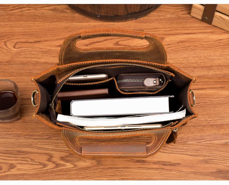 Style: Light Brown Leather Mens 12 inches Briefcase Laptop Bag Business Bags Work Bags for Men