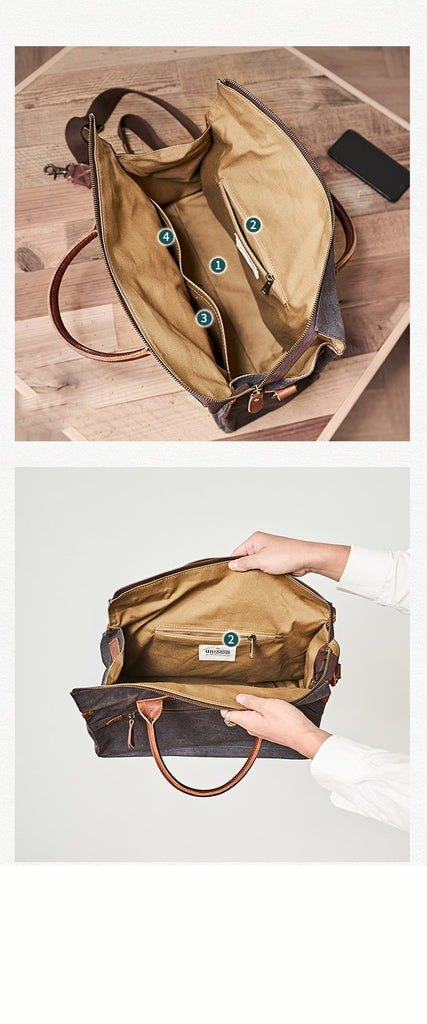 Style: Mens Gray Green Canvas 14inch Black Briefcase Handbag Work Bag Business Bag for Men