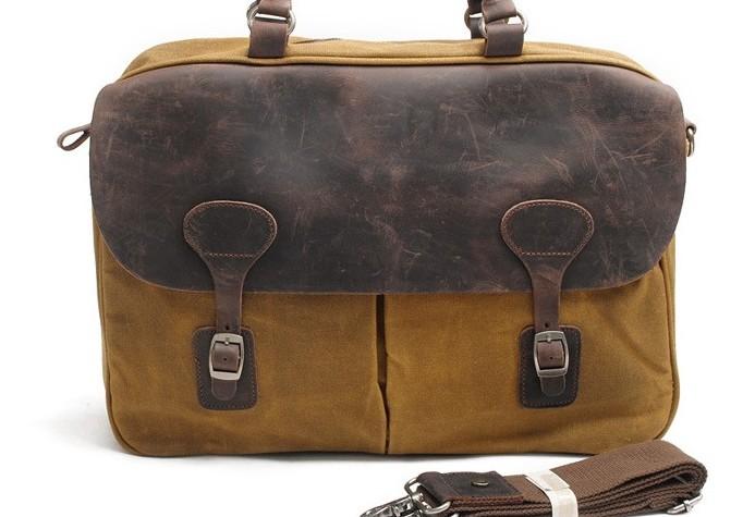 Design: Mens Canvas Leather Briefcase Handbag Work Bag Business Bag for Men