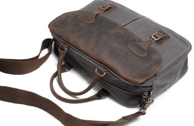 Style: Mens Canvas Leather Briefcase Handbag Work Bag Business Bag for Men