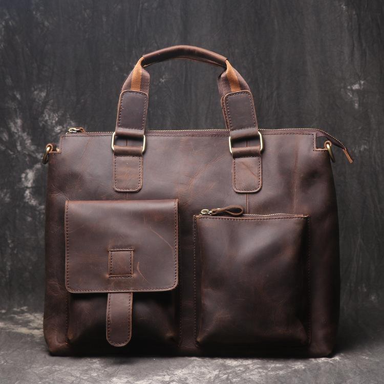 Design: Leather Mens Briefcase 13inch Laptop Handbag Work Bag Business Bag Shoulder Bag For MenOverview: