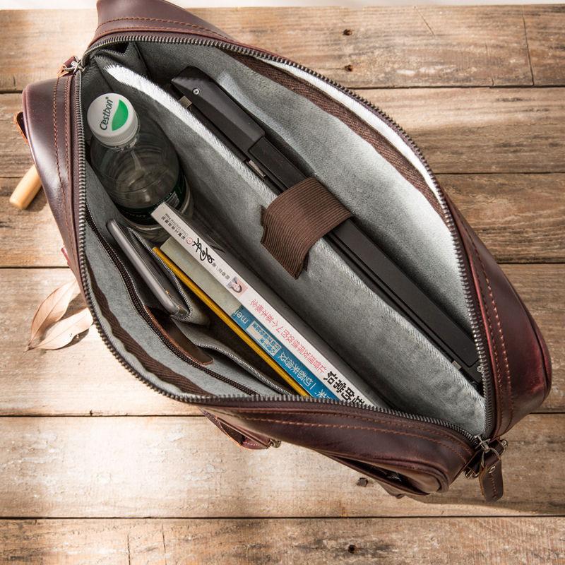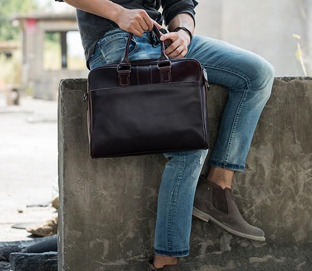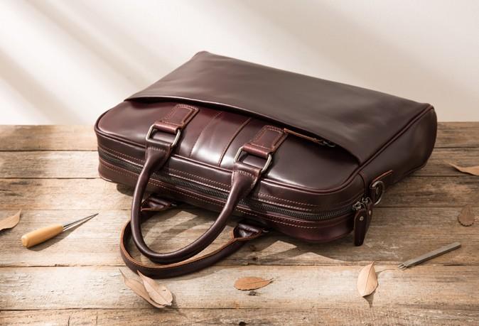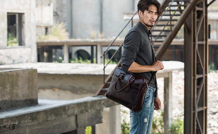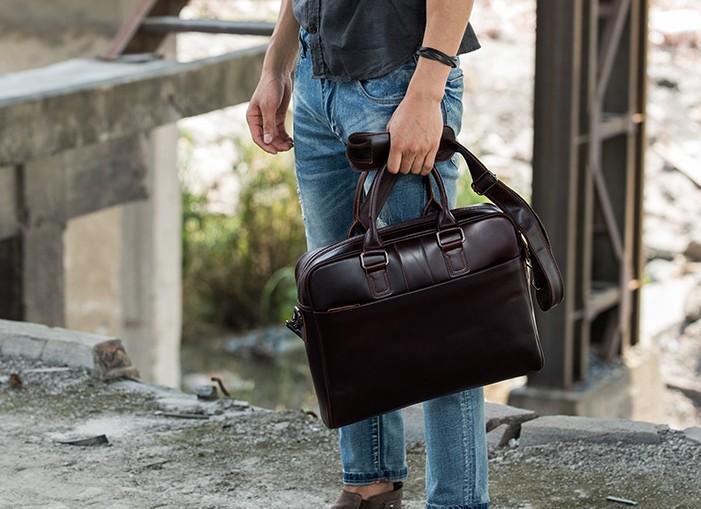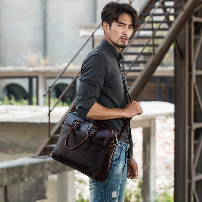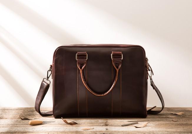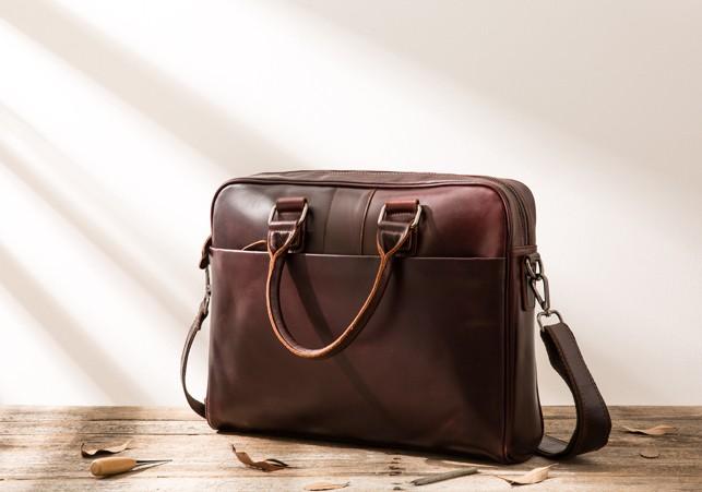 Design: Red Brown Leather Mens Briefcase Work Bag Laptop Bag Business Bag for Men