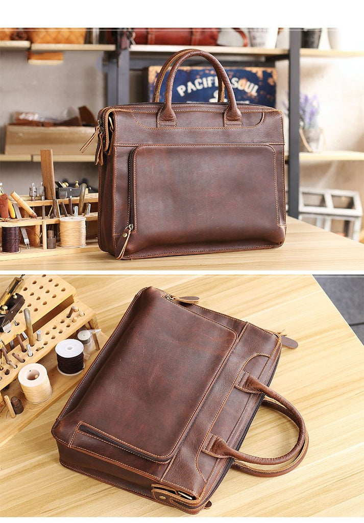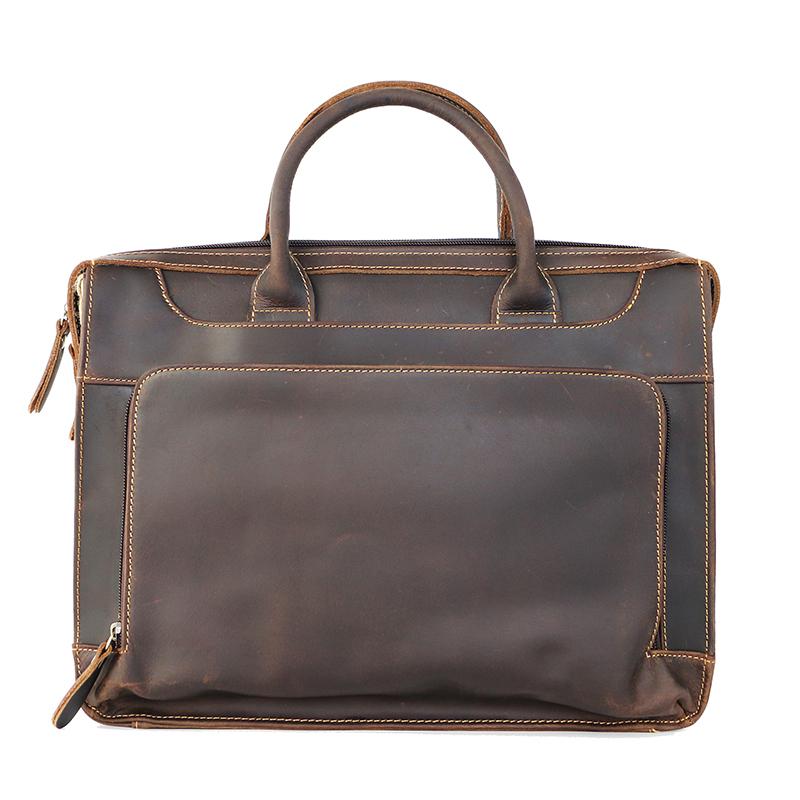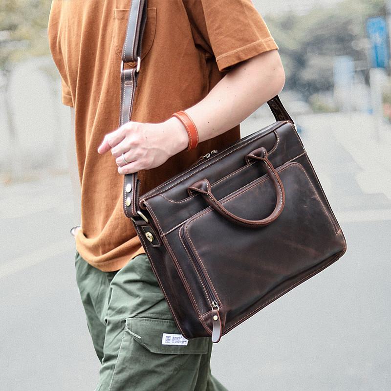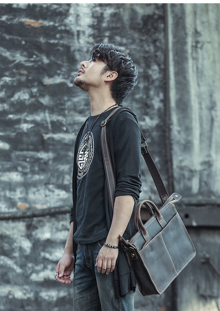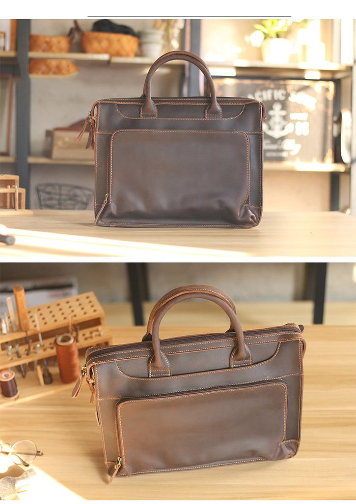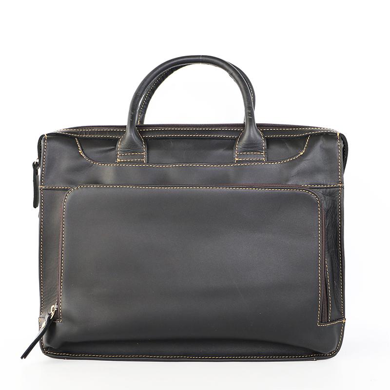 Design: Retro Black Mens Leather Briefcase Work Handbag Black 14'' Computer Briefcases For MenOverview: