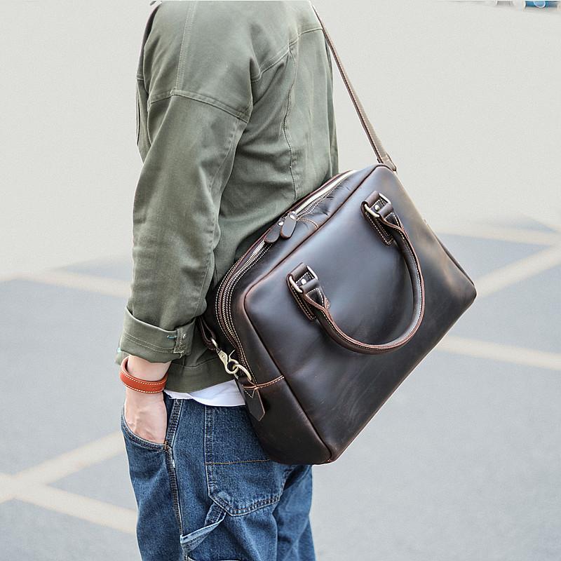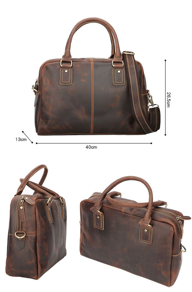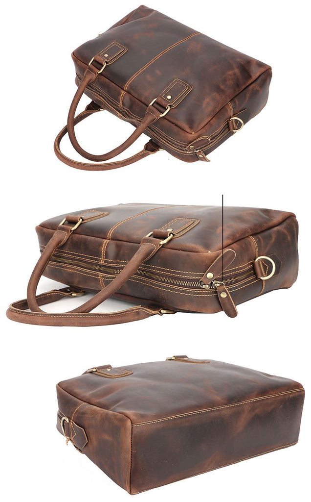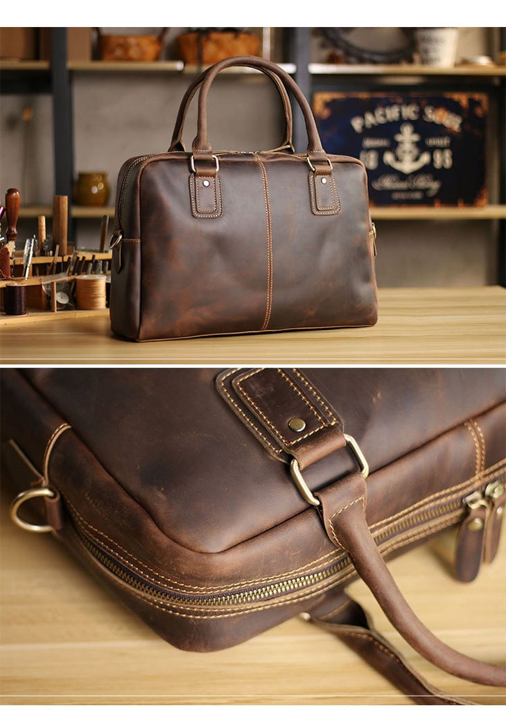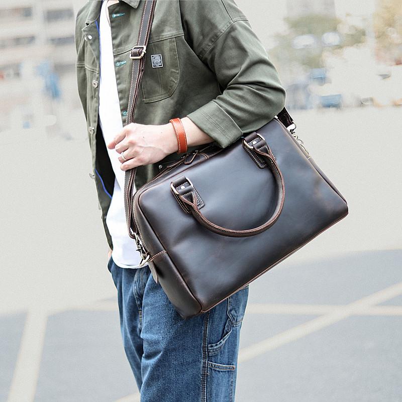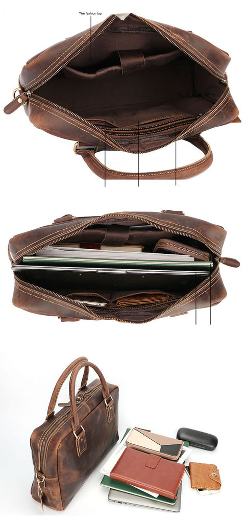 Style: Retro Dark Brown Mens Leather Briefcase Work Handbag Ancient Brown Large Computer Briefcase For Men