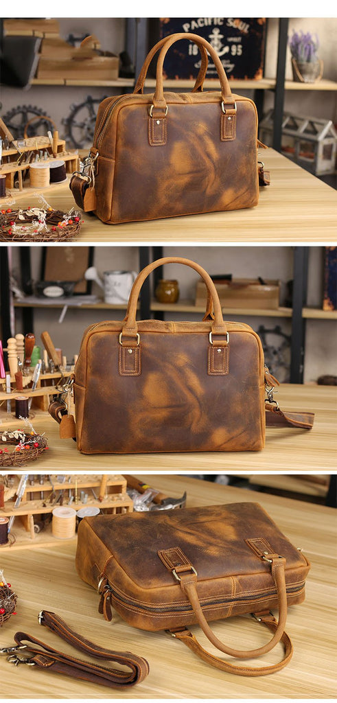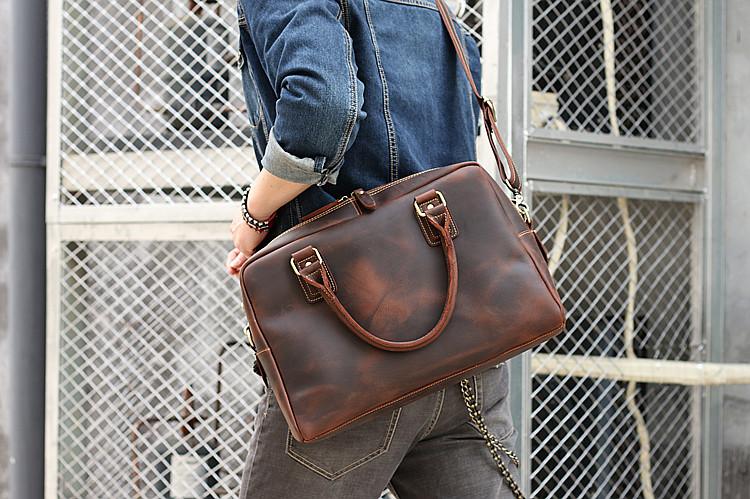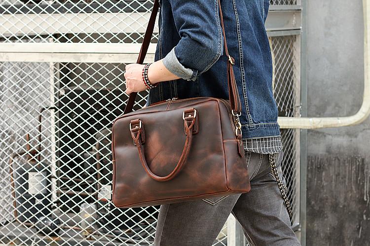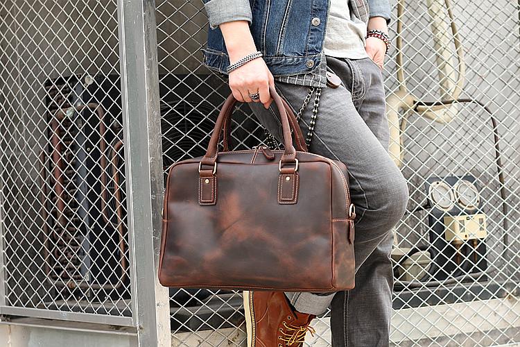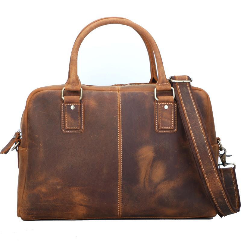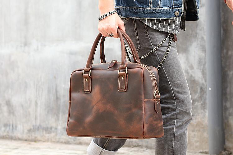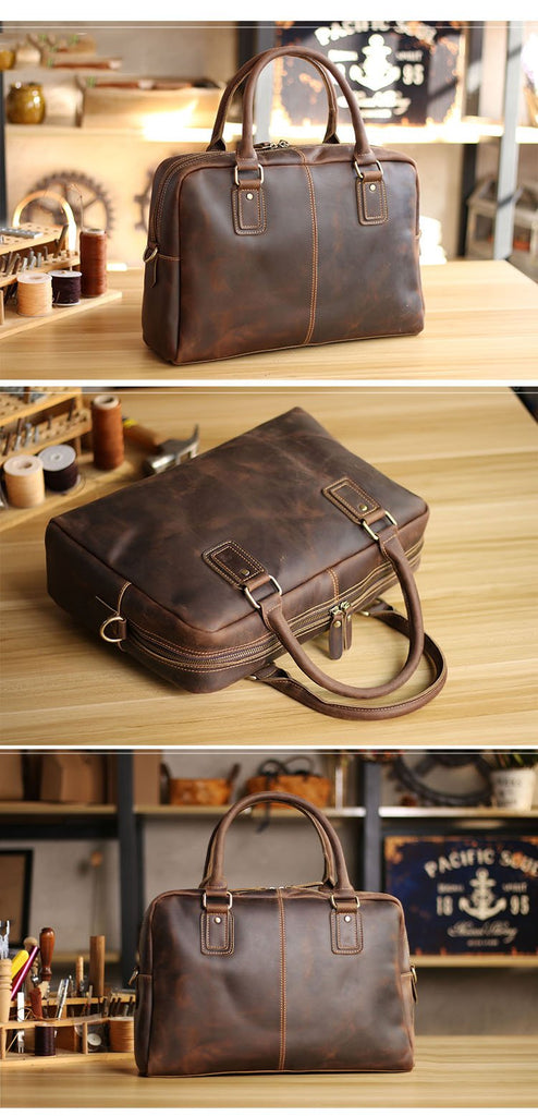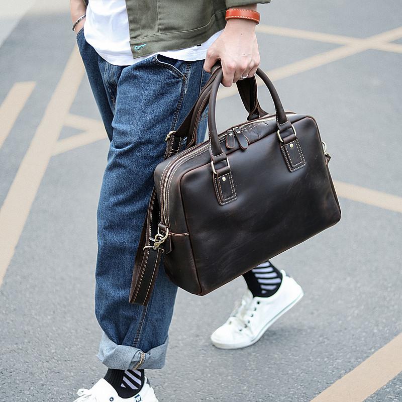 Style: Retro Dark Brown Mens Leather Briefcase Work Handbag Ancient Brown Large Computer Briefcase For Men