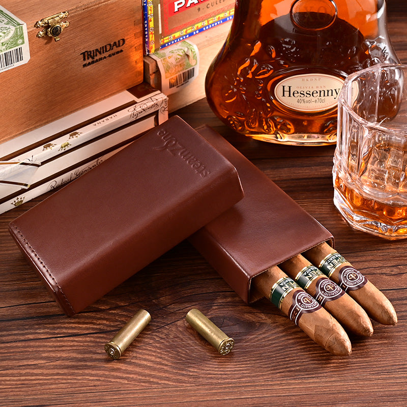 Design: Best Eco Leather&Cedar Mens 3pcs Cigar Case Hydrating Leather Cigar Cases for Men