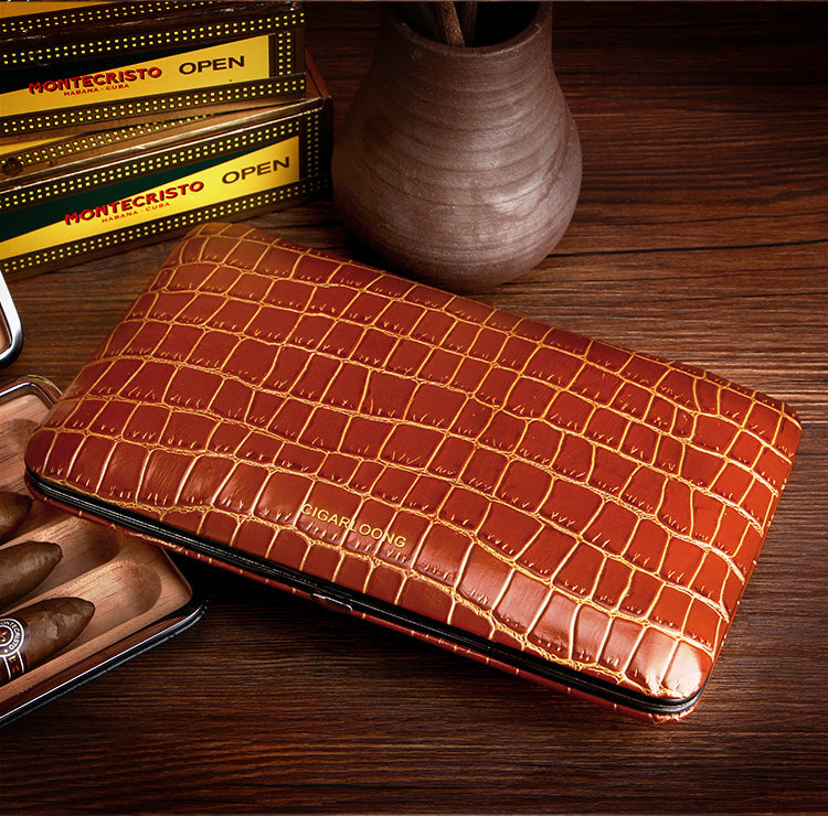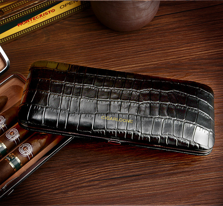 Design: Best Leather&Cedar Mens 4pcs Cigar Cases Alligator Pattern Leather Cigar Cases for Men