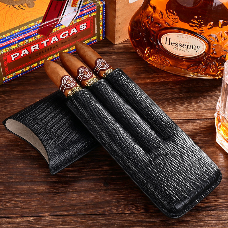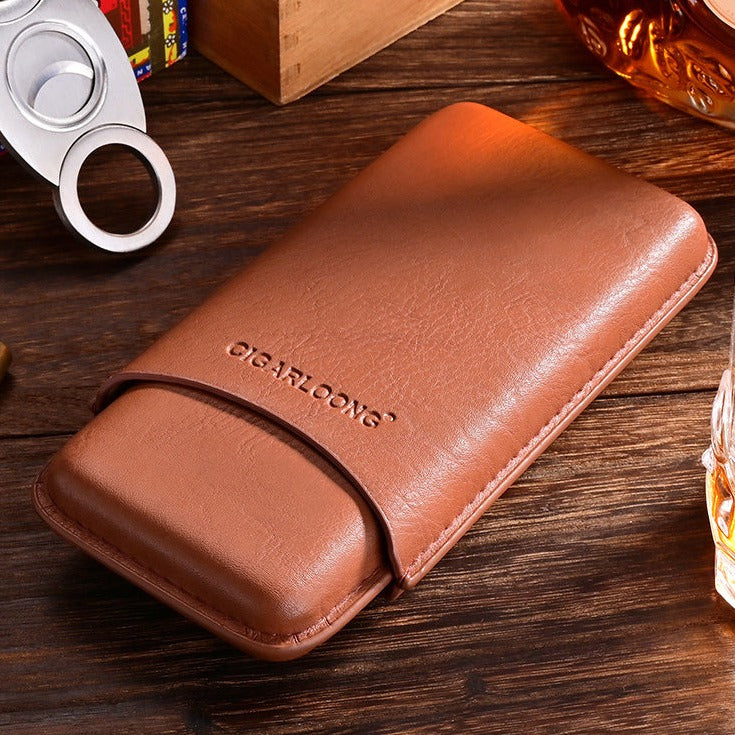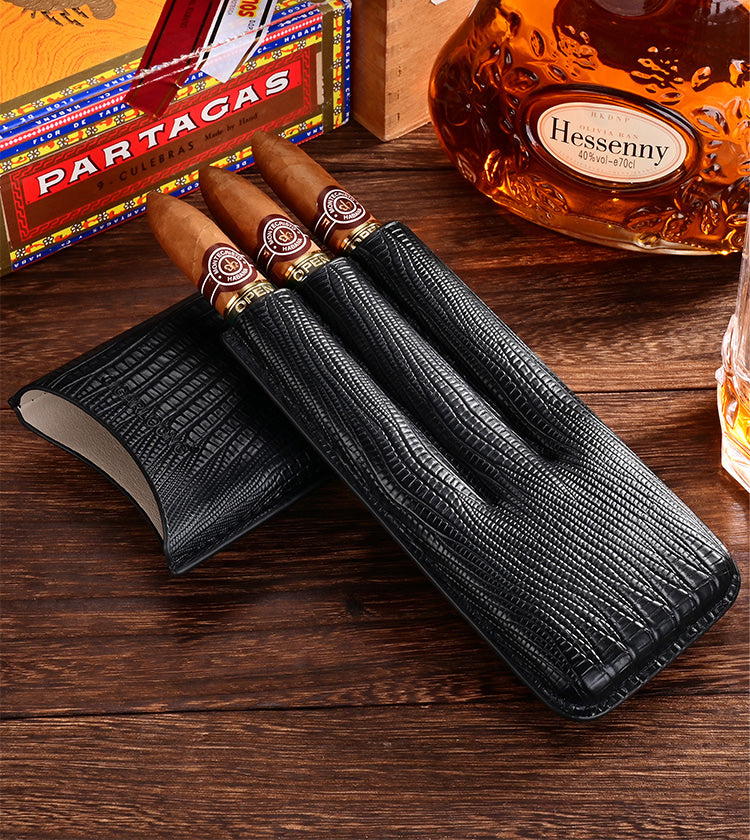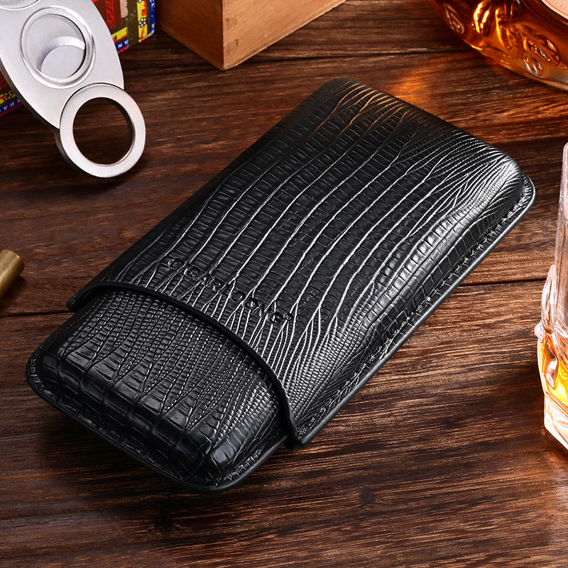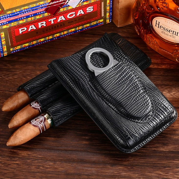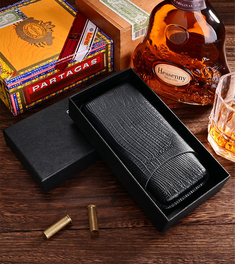 Style: Cool Leather Mens 3pcs Cigar Case With Cutter Leather Cigar Case for Men