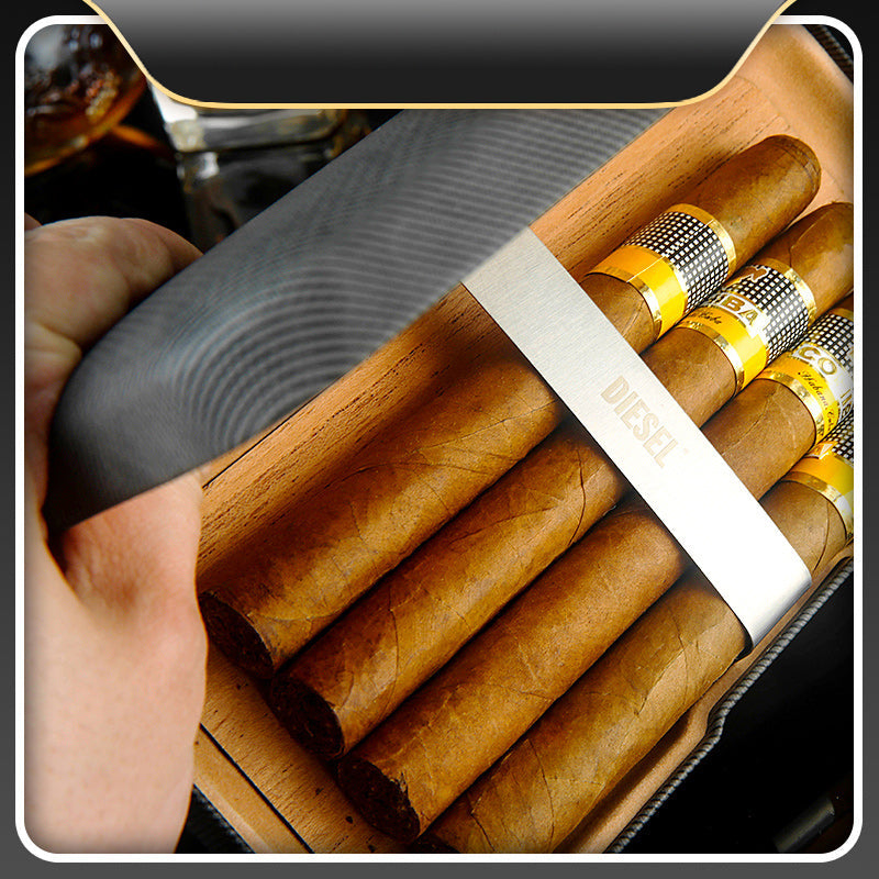 Design: Black Leather&Cedar Mens 4pcs Cigar Case With Cutter Leather Cigar Cases for Men