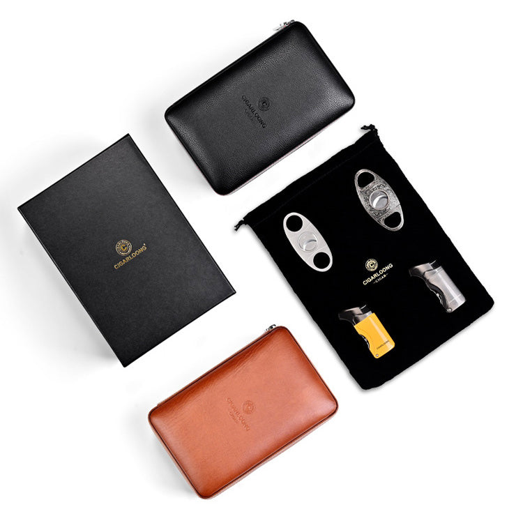 Style: Leather Cigar Box, Travel Leather Cigar Case, Leather Cigar Humidor, Cigar Cutter and Humidifier