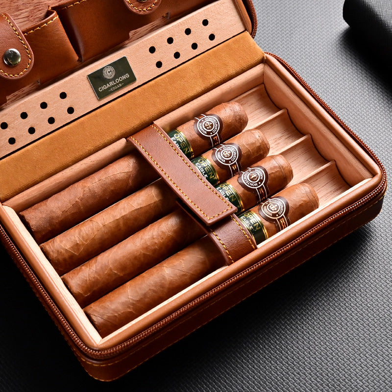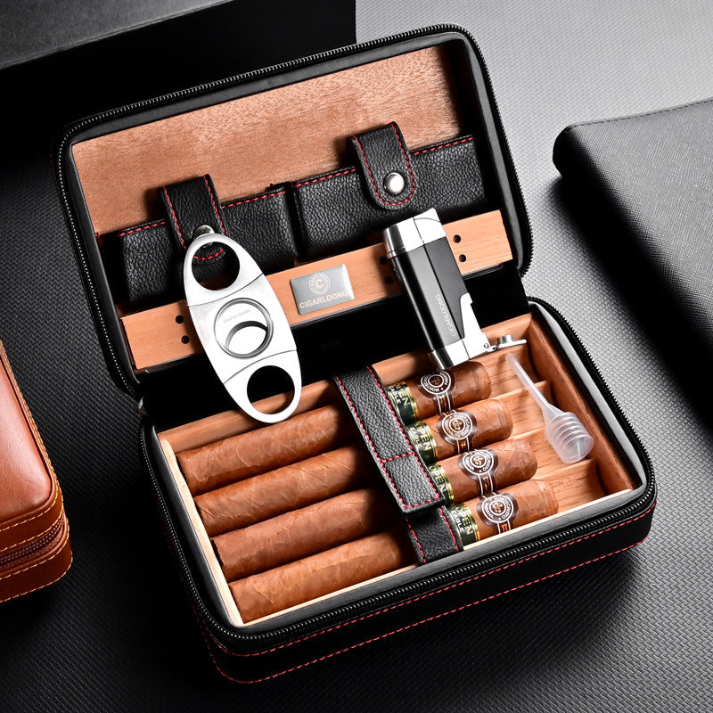 Slots: 4 Cigar Holders, 1 Cutter Pocket, 1 Lighter Pocket