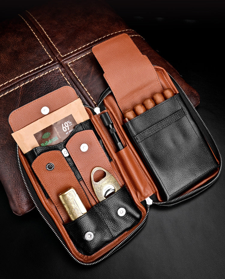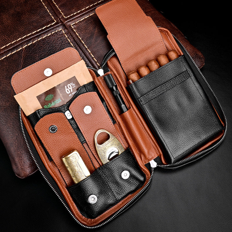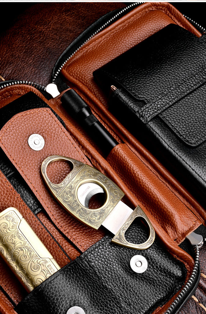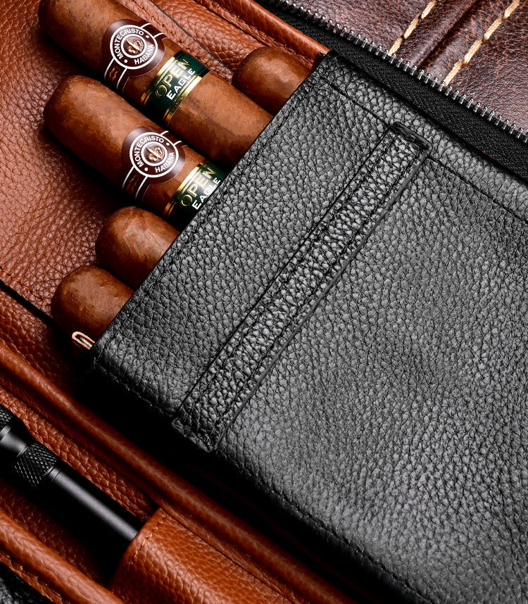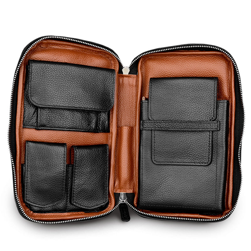 Style: Black Leather Tobacco Pipe Rollup Bag, Pipe Pouch, The Pipe Smoker's Full Set Gift for Him
