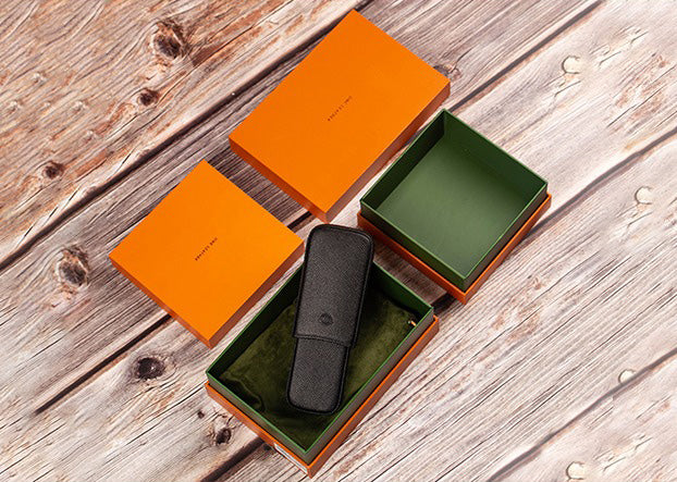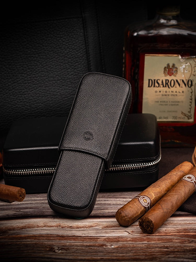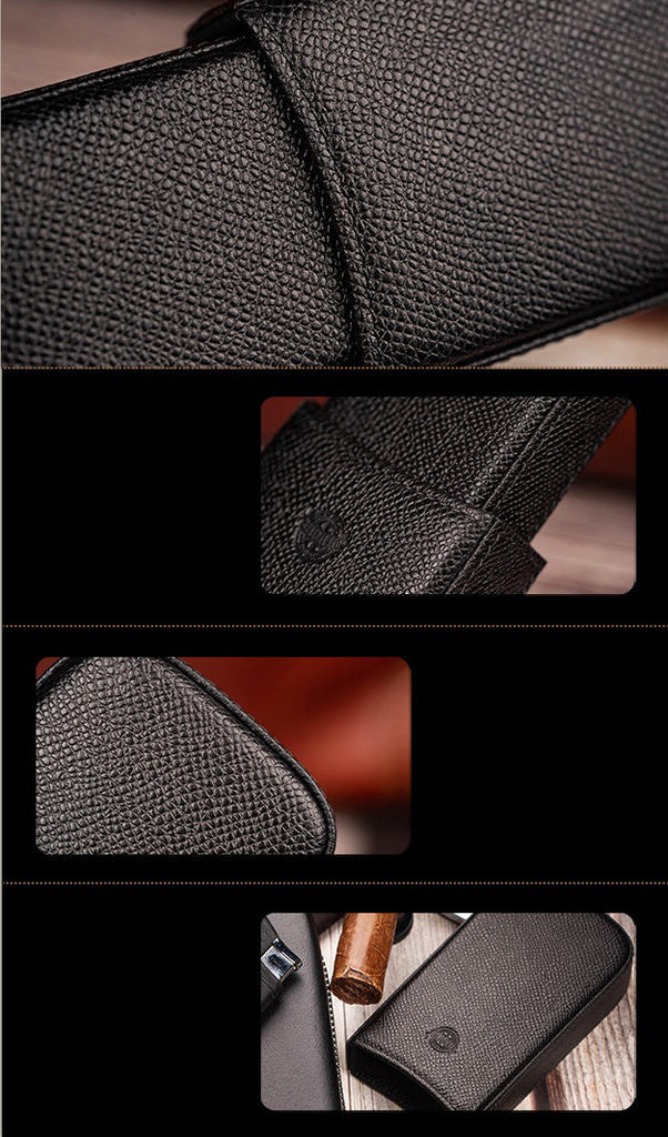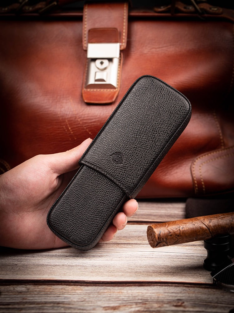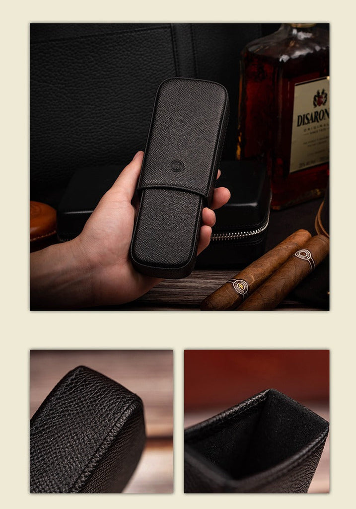 Design: Classic Black Leather Mens 2pcs Cigar Case Cool Leather Cigar Case for Men