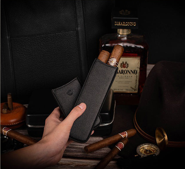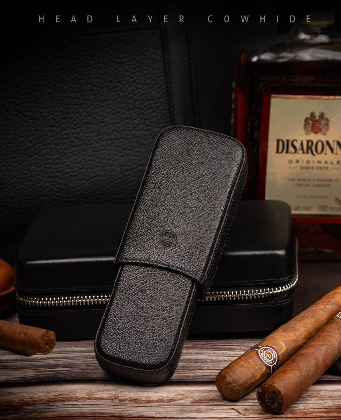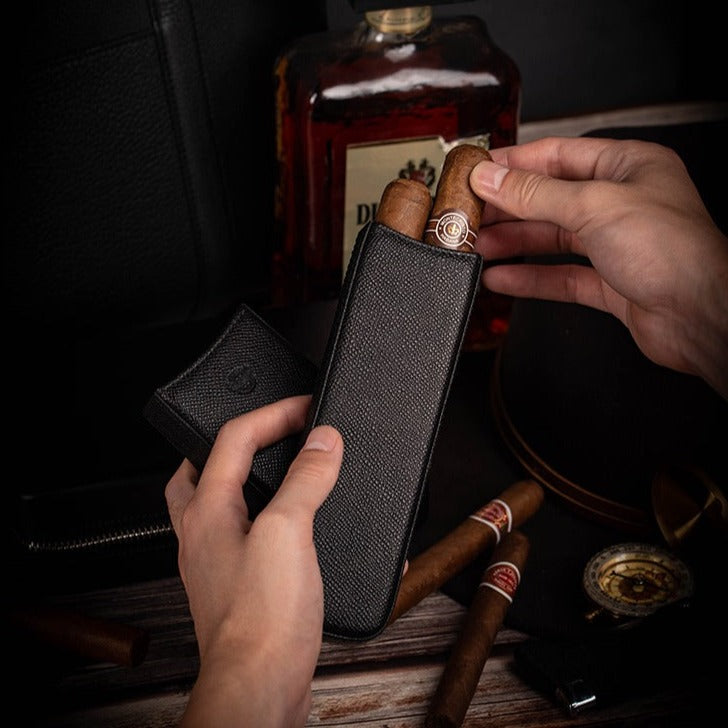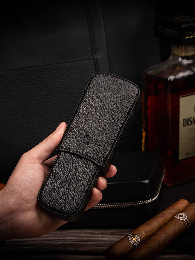 Classic Black Leather 2pcs Cigar Case Cool Leather Cigar Case for Men