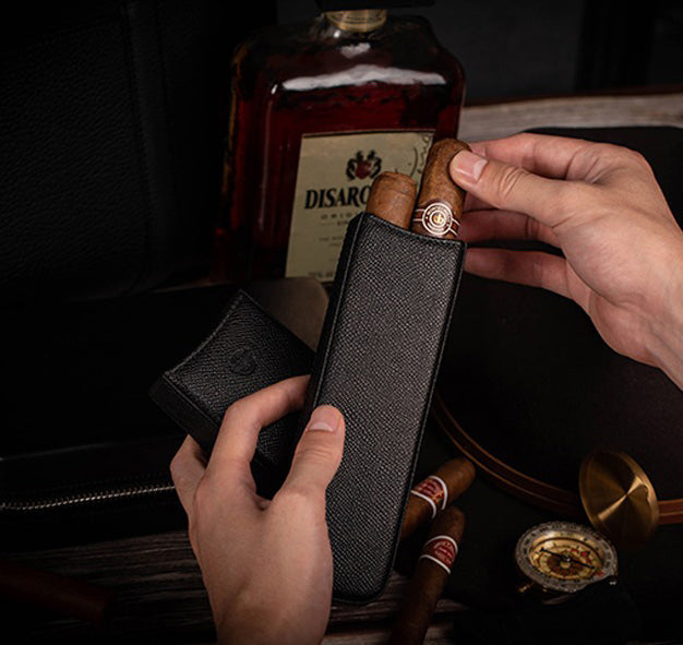 Style: Classic Black Leather Mens 2pcs Cigar Case Cool Leather Cigar Case for Men