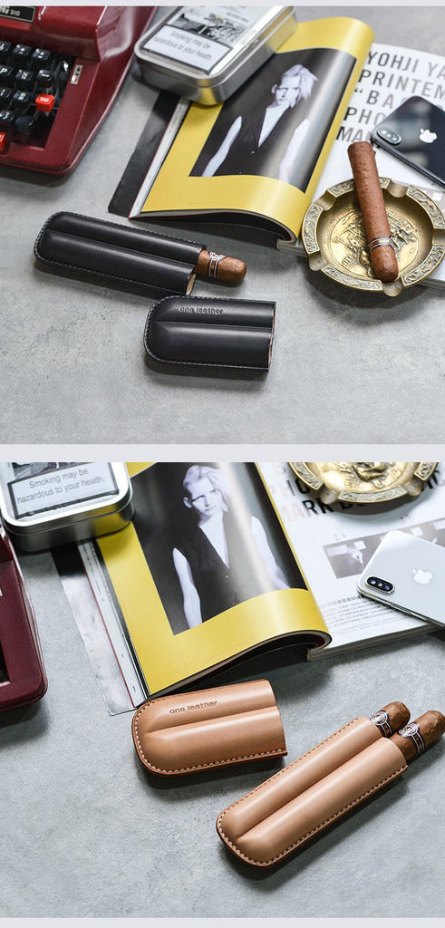 Style: Cool Beige Leather Mens 2pcs Cigar Case Cool Custom Leather Cigar Case for Men