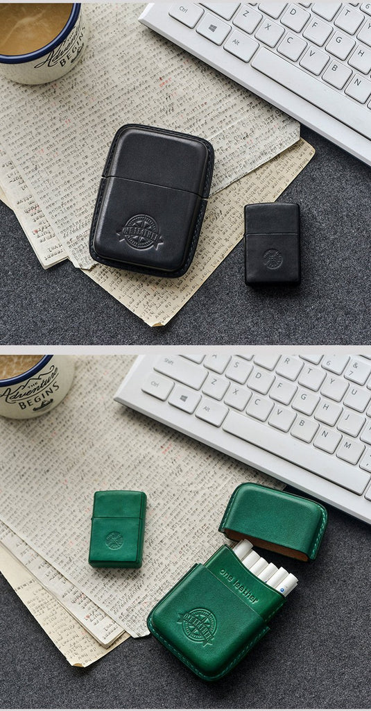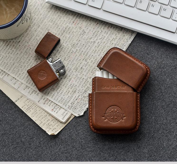 Design: Cool Brown Leather Mens 14pcs Cigarette Holder Case Cool Custom Cigarette Case for Men