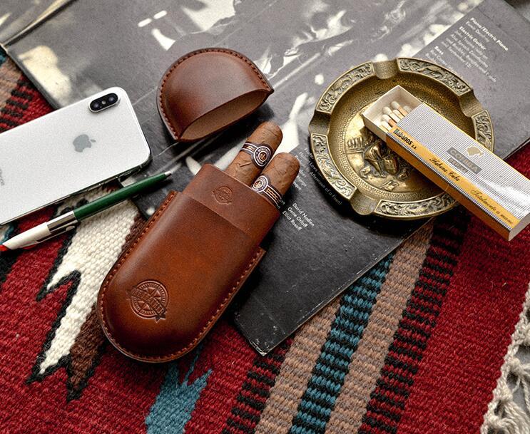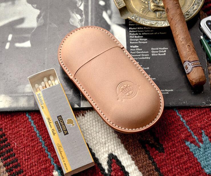 Style: Cool Beige Leather Mens 2pcs Cigar Case Cool Custom Leather Cigar Case for Men
