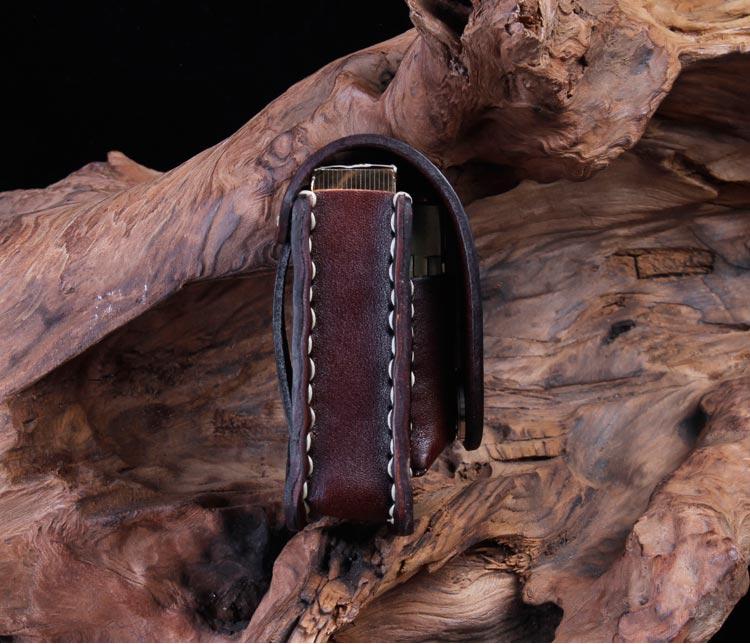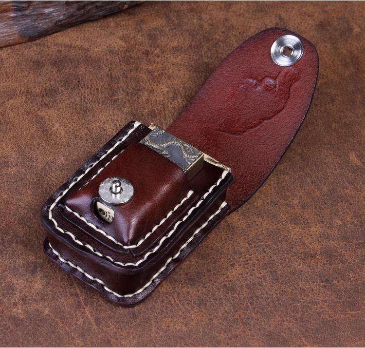 Cool Coffee Leather Mens Engraved Tiger Cigarette Holder Case lighter Holder for Men