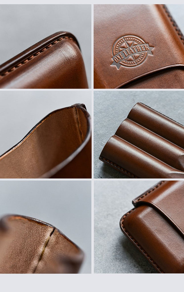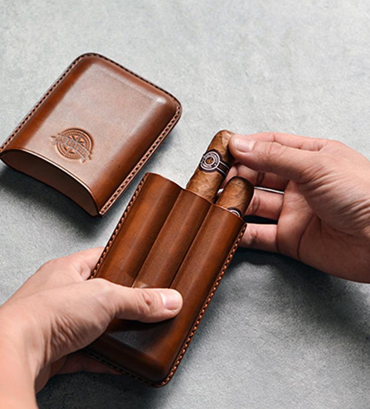 Design: Cool Beige Leather Mens 3pcs Cigar Case Cool Custom Leather Cigar Case for Men