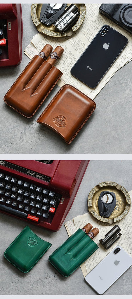 Style: Cool Beige Leather Mens 3pcs Cigar Case Cool Custom Leather Cigar Case for Men