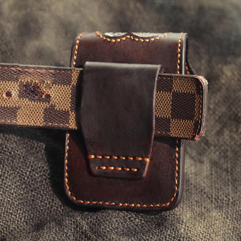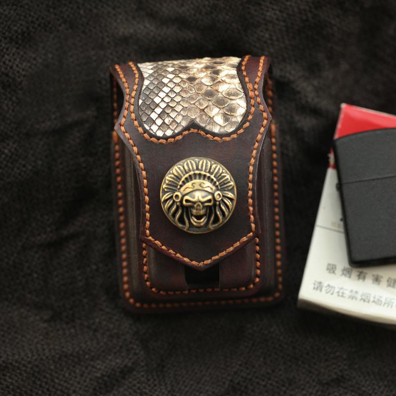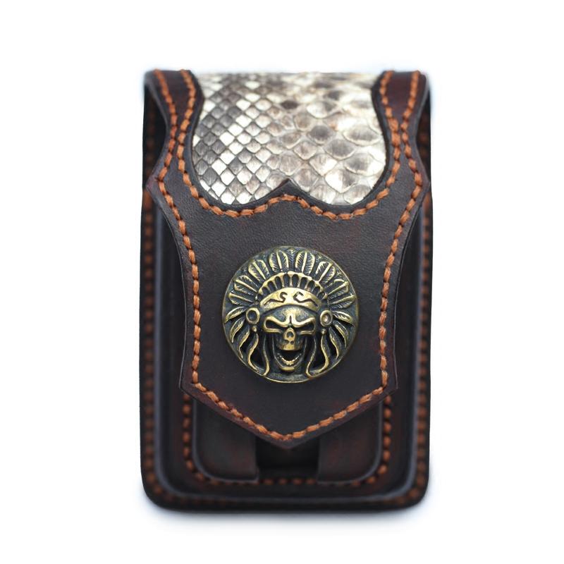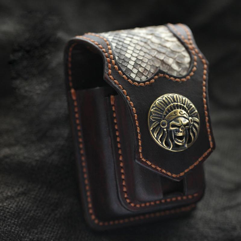 Design: Cool Handmade Coffee Snake Leather Mens Cigarette Case with Lighter Holder Belt Loop for Men